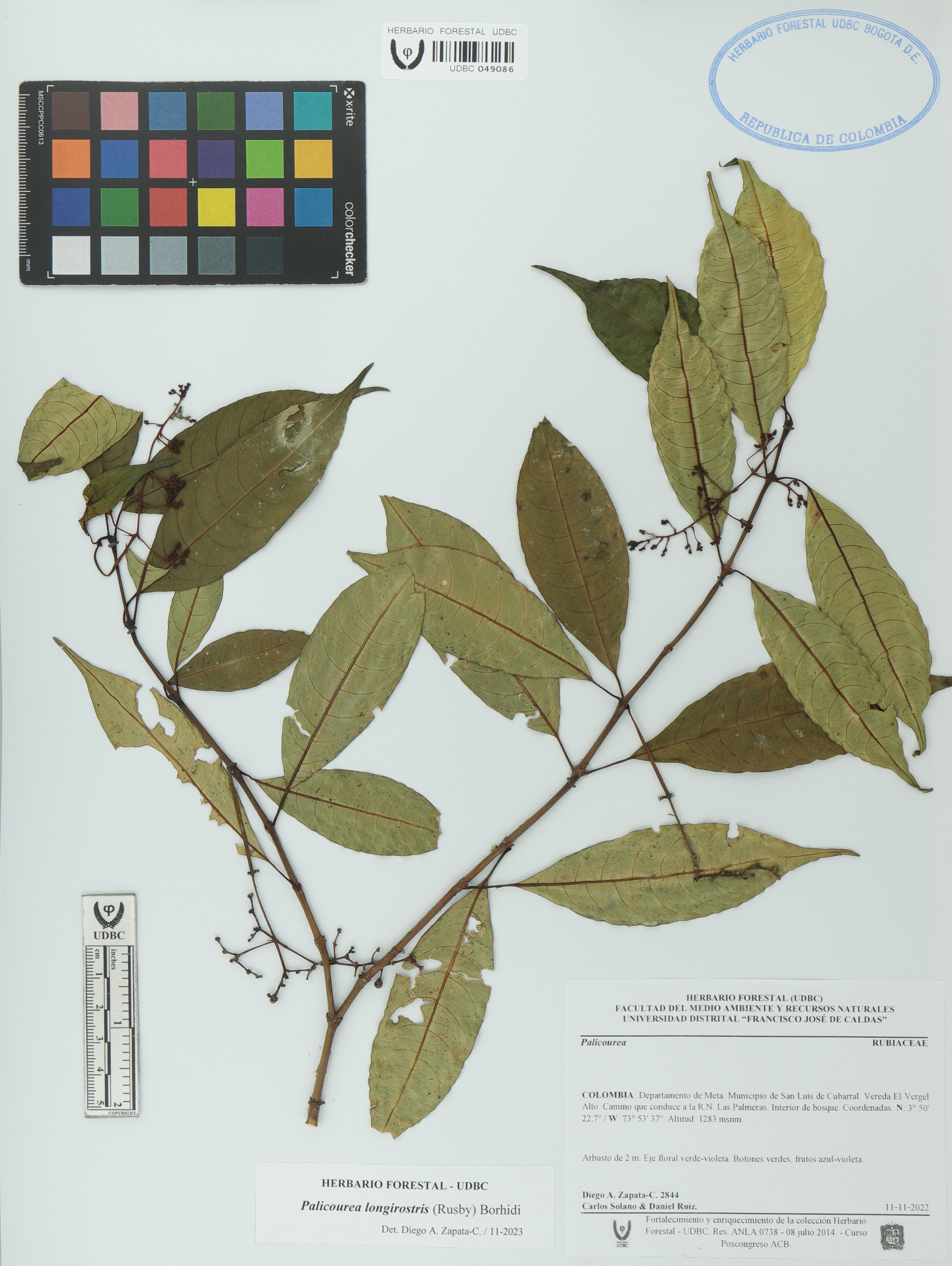 Fotografía del ejemplar Zapata-C., D. 2844, determinado como Palicourea longirostris en el año 2023