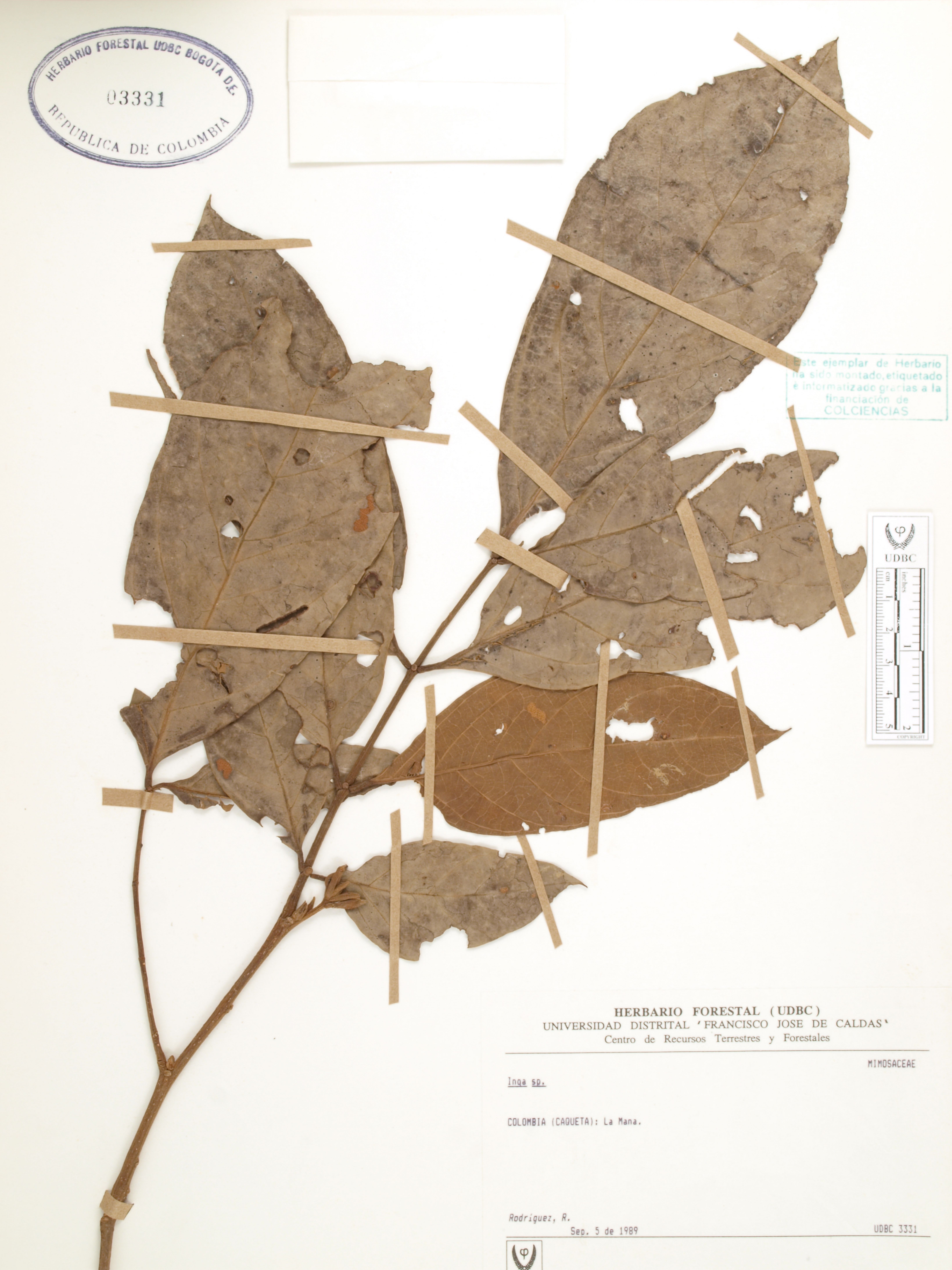 Fotografía del ejemplar Rodríguez, R., determinado como Inga sp.