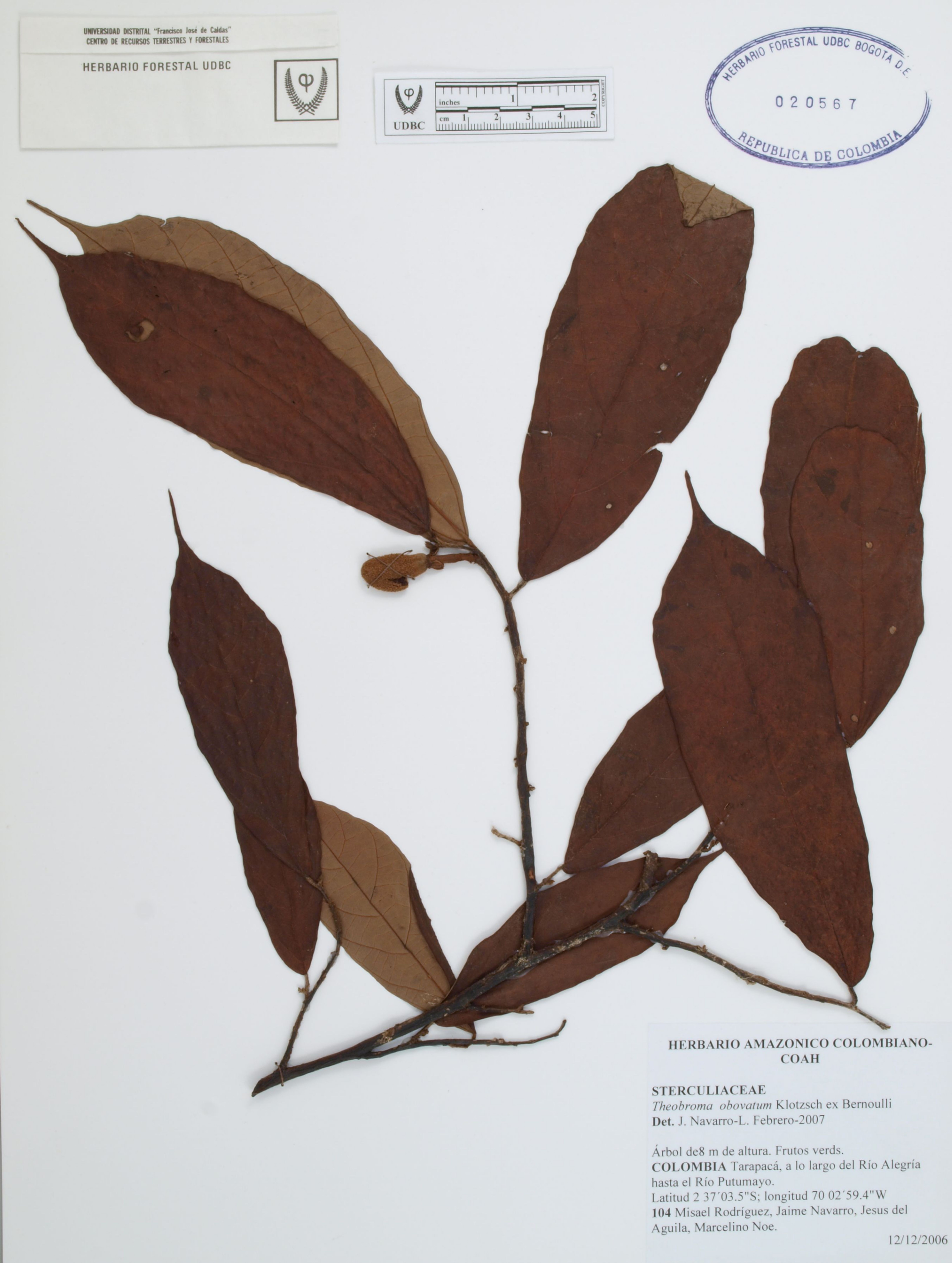 | dc.description | Fotografía del ejemplar Rodríguez, M. 104, determinado como Theobroma obovatum en el año 2007 | |