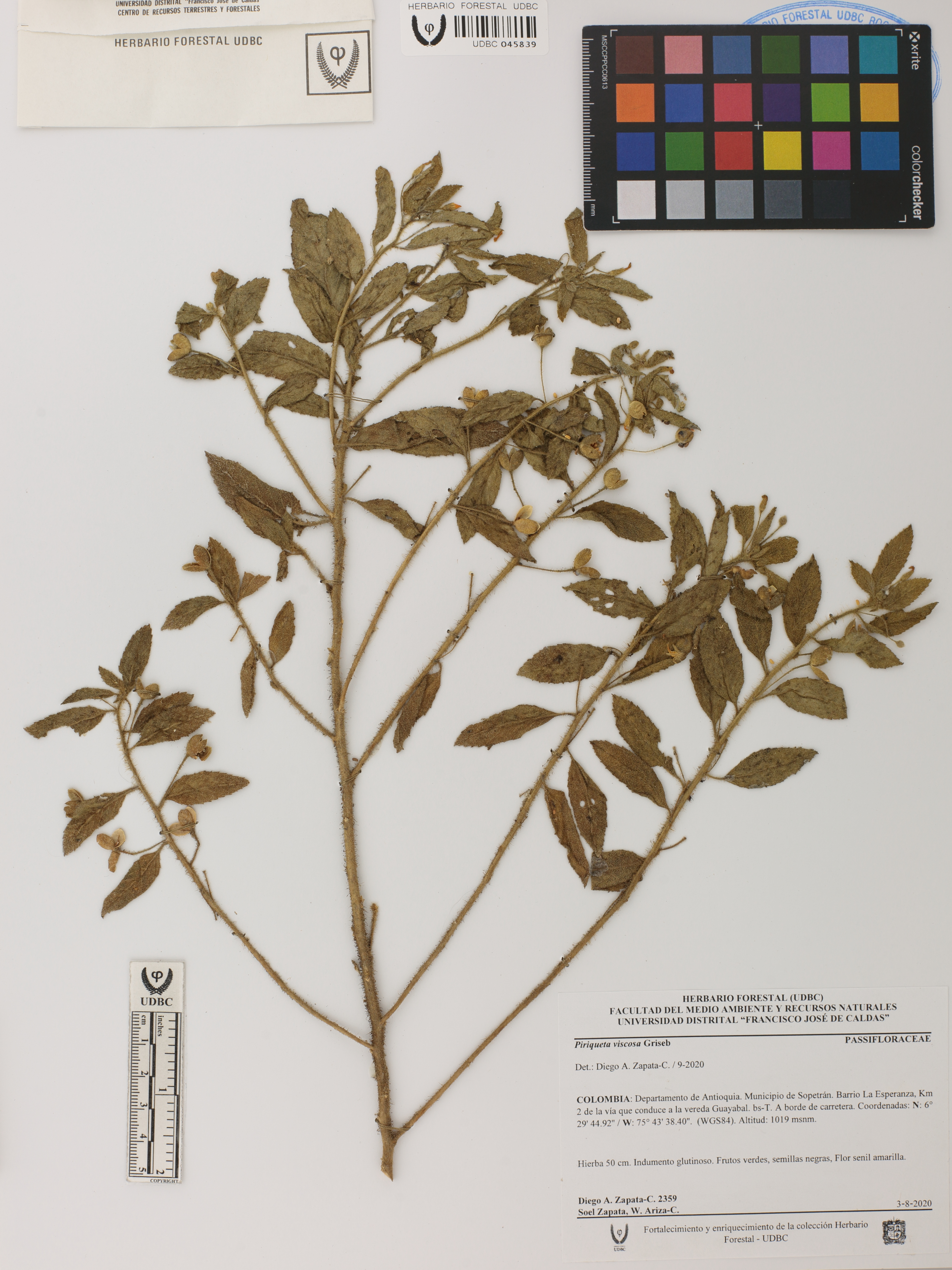 Fotografía del ejemplar Zapata-C., D. 2359, determinado como Piriqueta viscosa en el año 2020