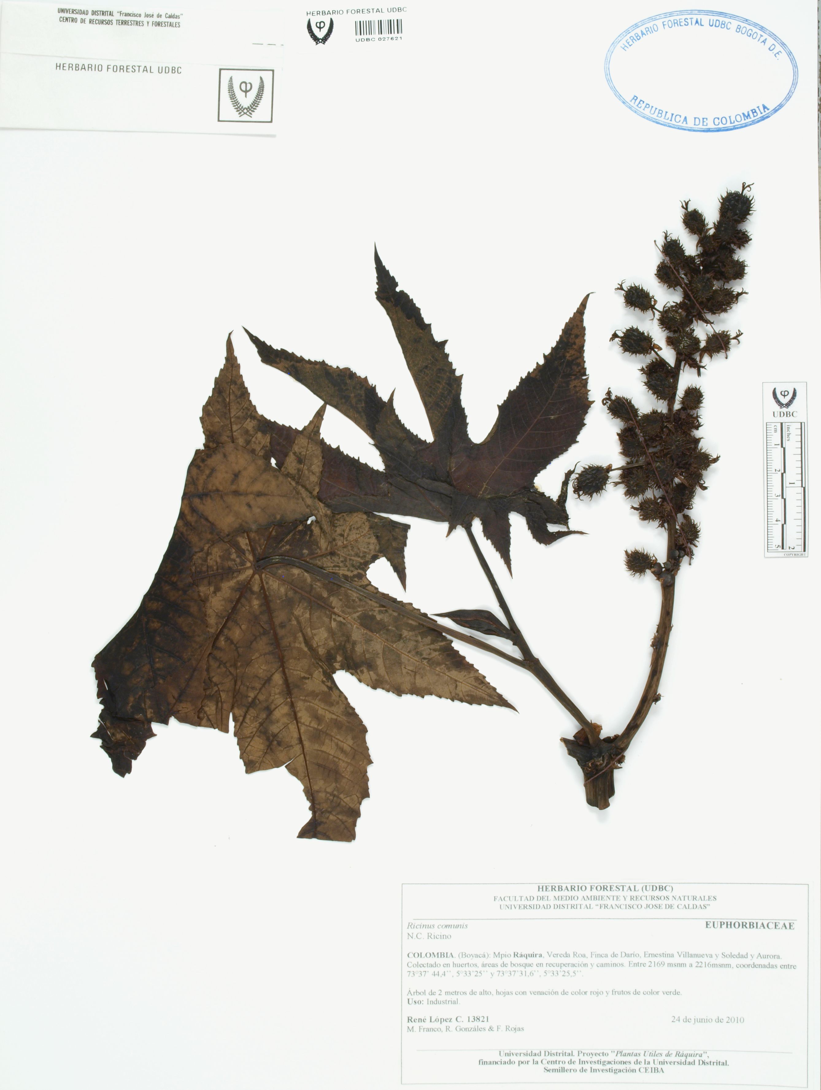 Fotografía del ejemplar López, R. 13821, determinado como Ricinus communis