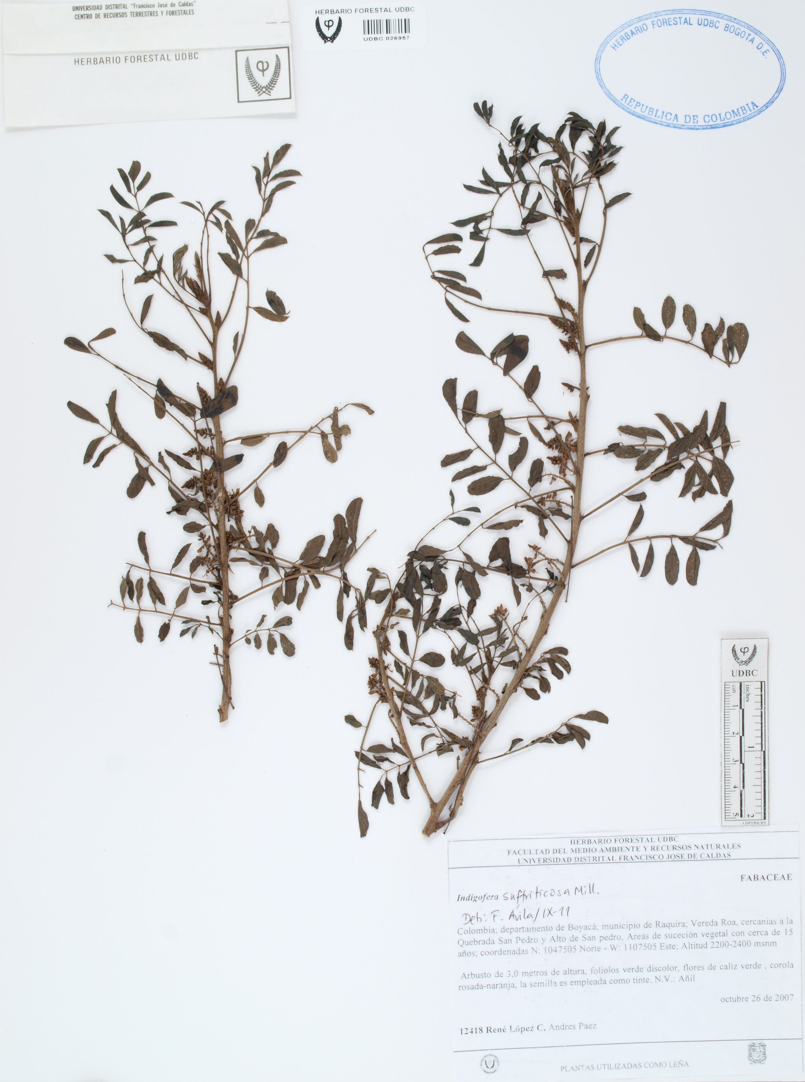 | dc.description | Fotografía del ejemplar López, R. 12418, determinado como Indigofera suffruticosa en el año 2011 | |