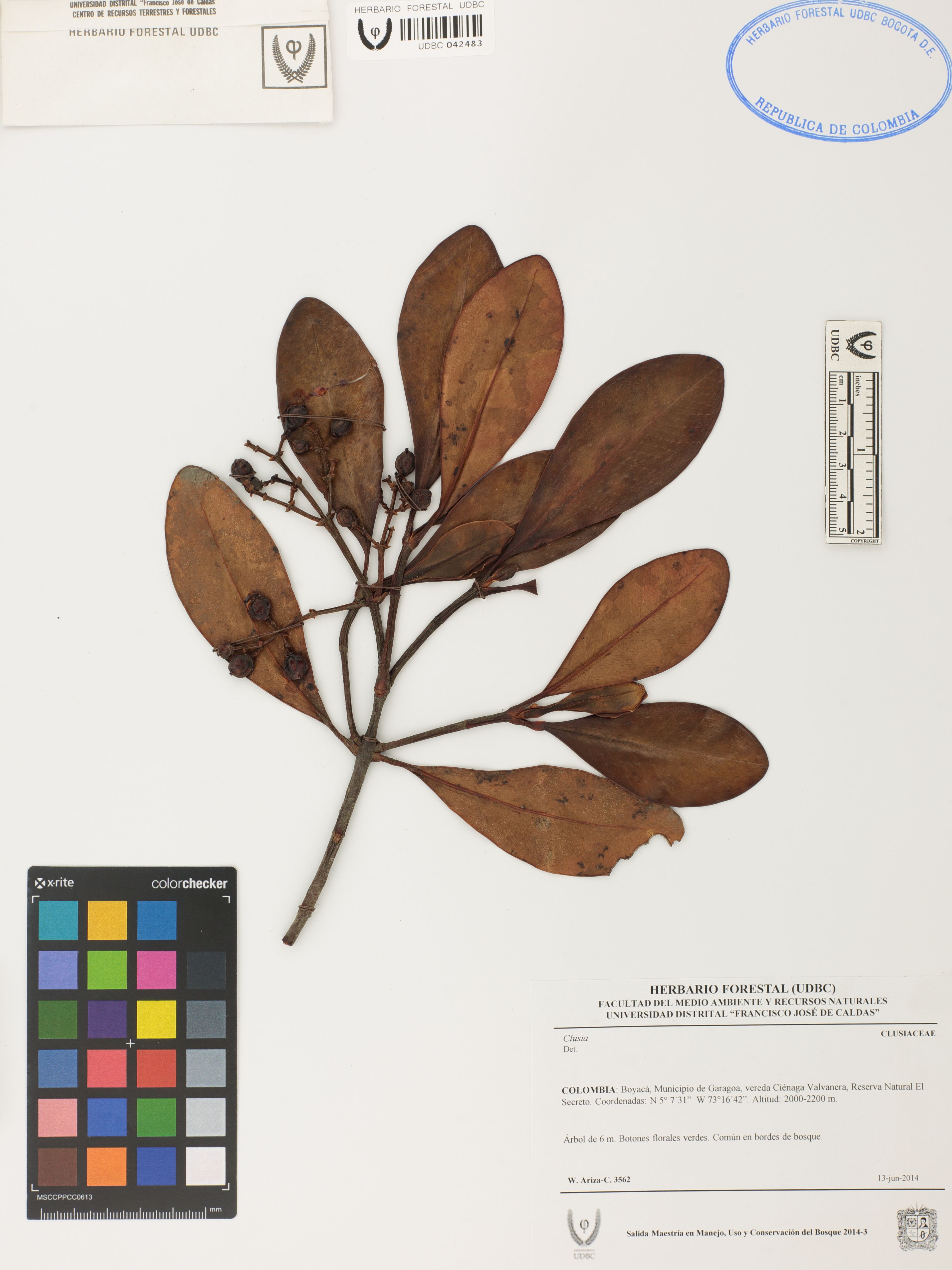 Fotografía del ejemplar Ariza-C., W. 3562, determinado como Clusia sp.