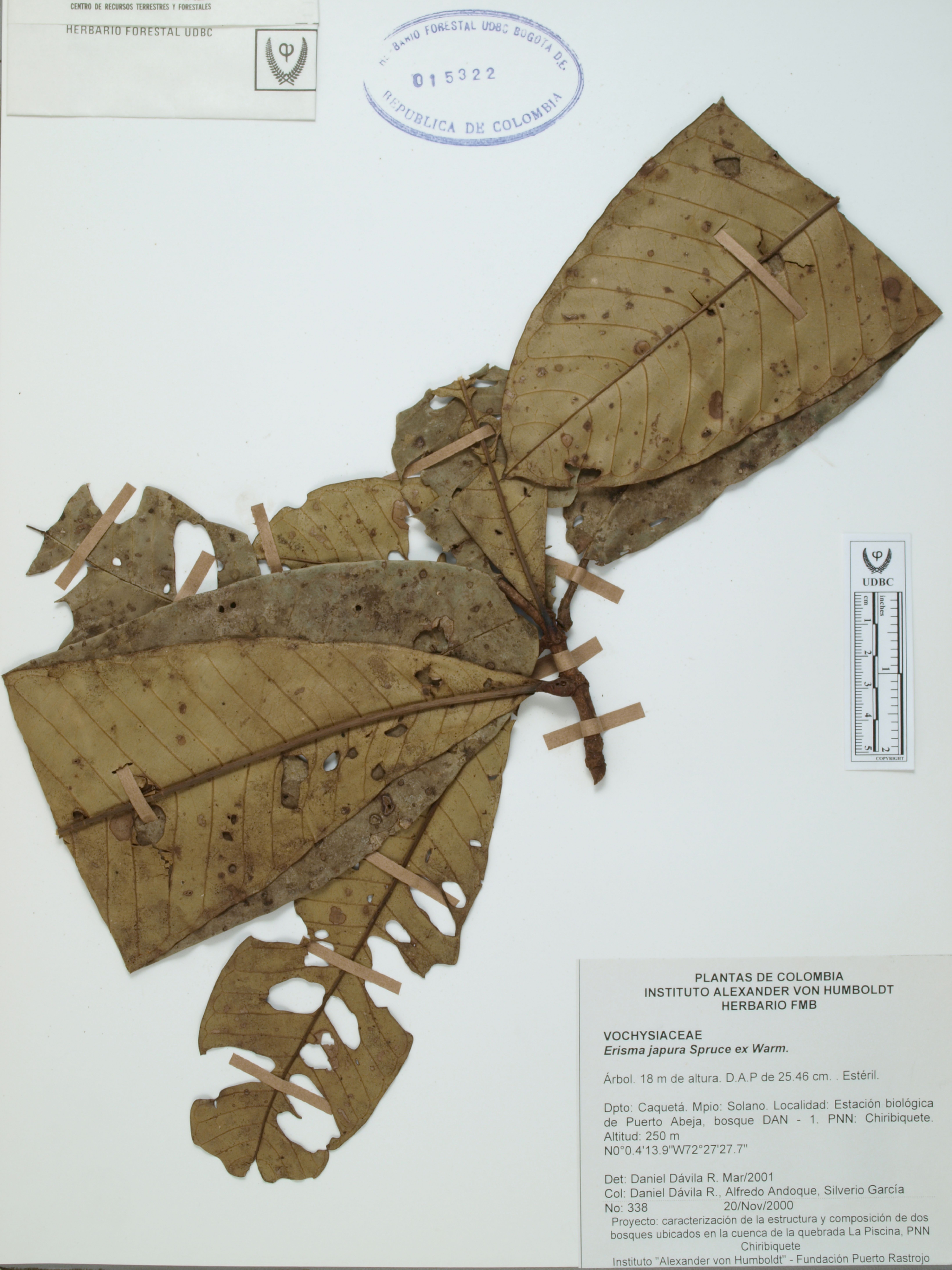 | dc.description | Fotografía del ejemplar Dávila, D. 338, determinado como Erisma japura en el año 2001 | |