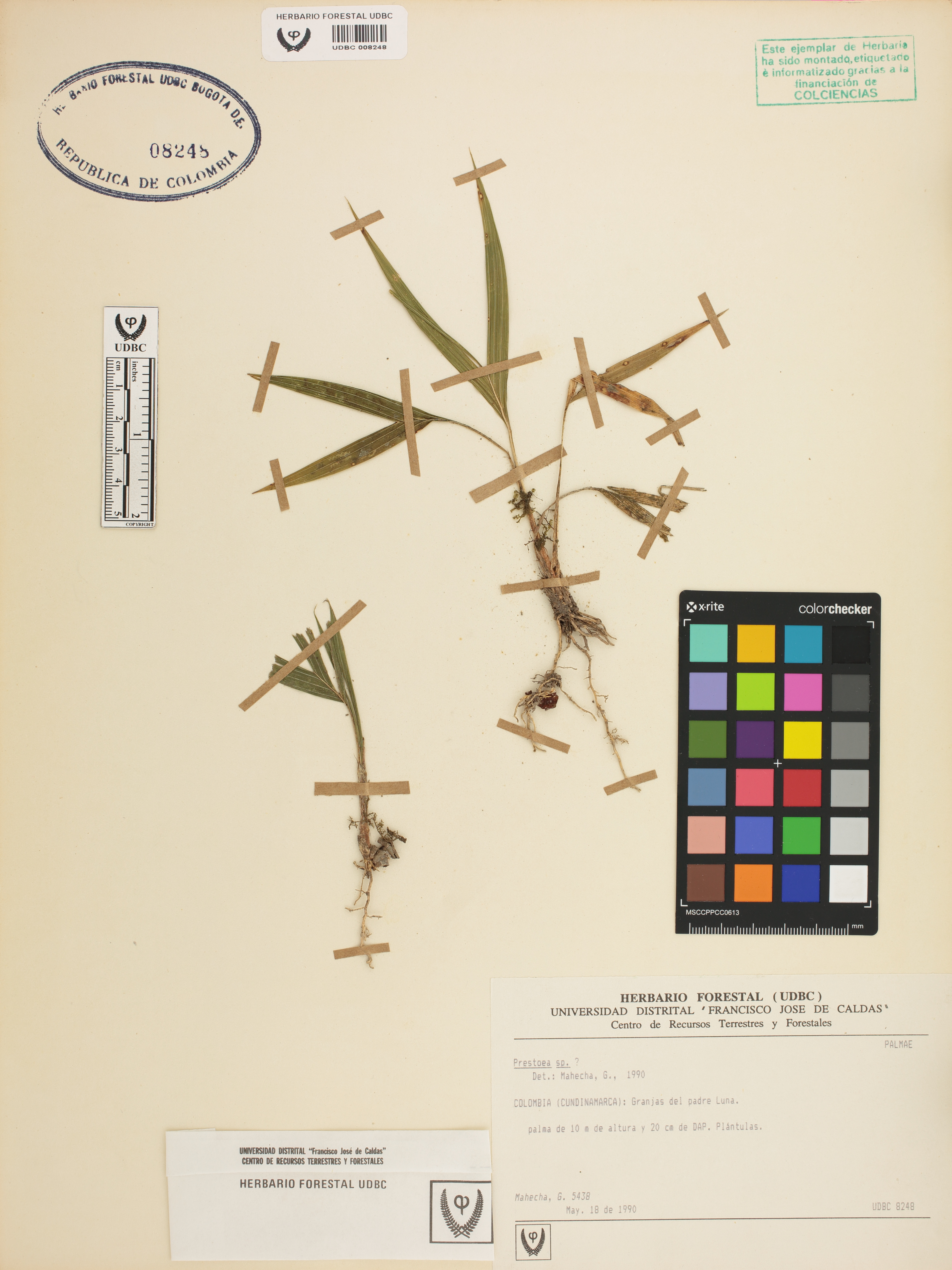 Fotografía del ejemplar Mahecha, G. 5438, determinado como Prestoea sp. en el año 1990