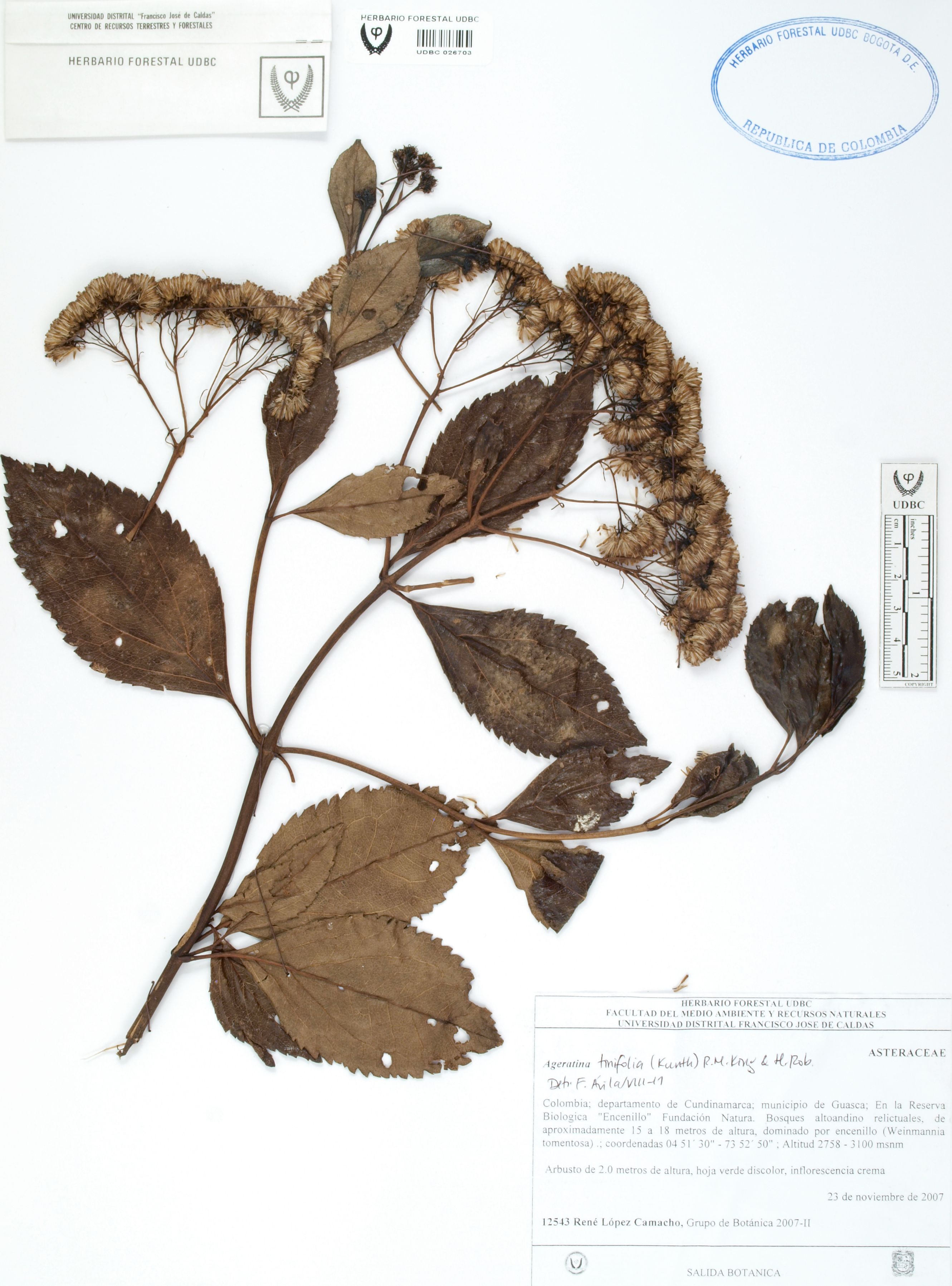 Fotografía del ejemplar López, R. 12543, determinado como Ageratina tinifolia en el año 2011