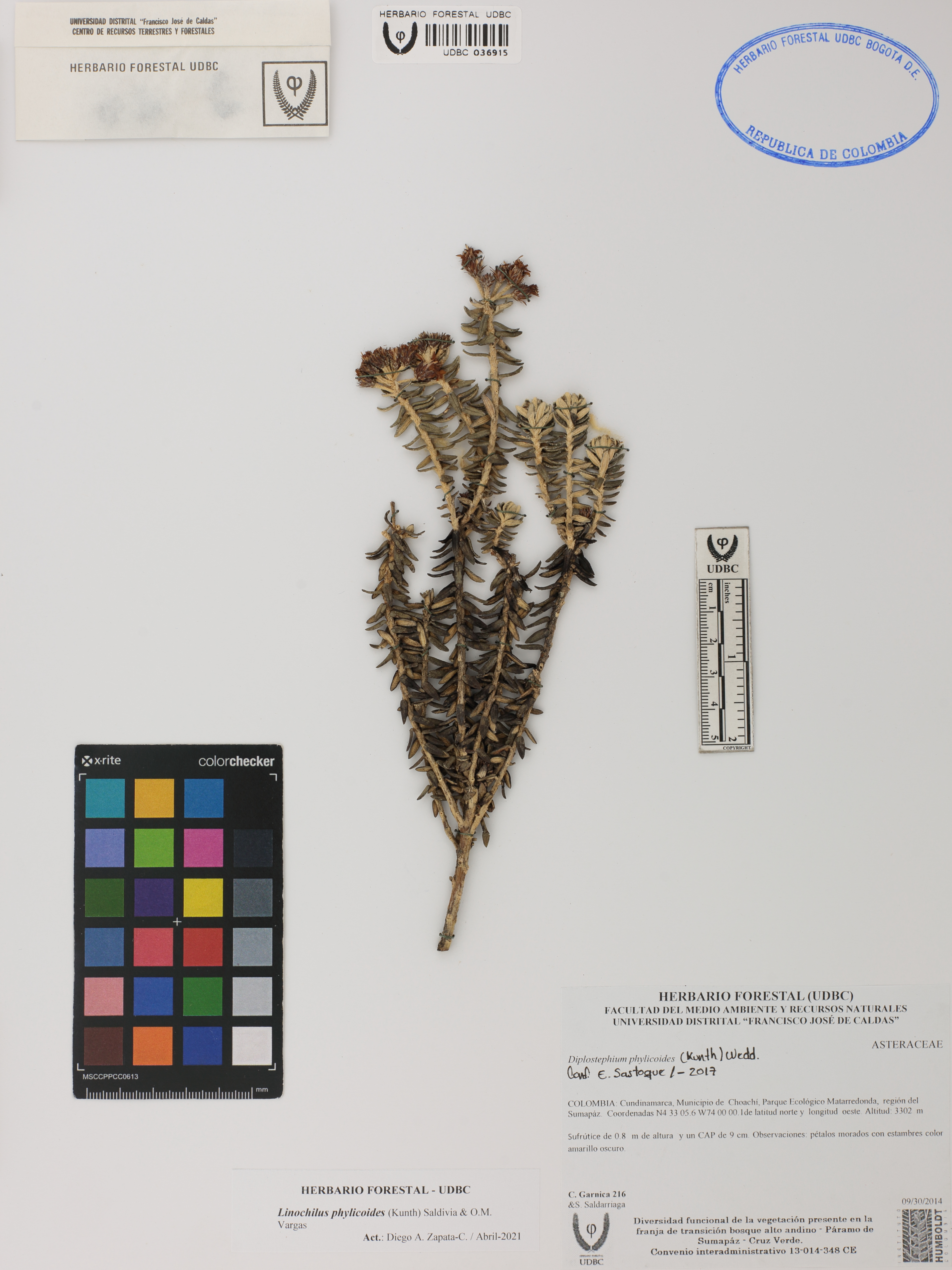 Fotografía del ejemplar Garnica, C. 216, determinado como Linochilus phylicoides en el año 2017