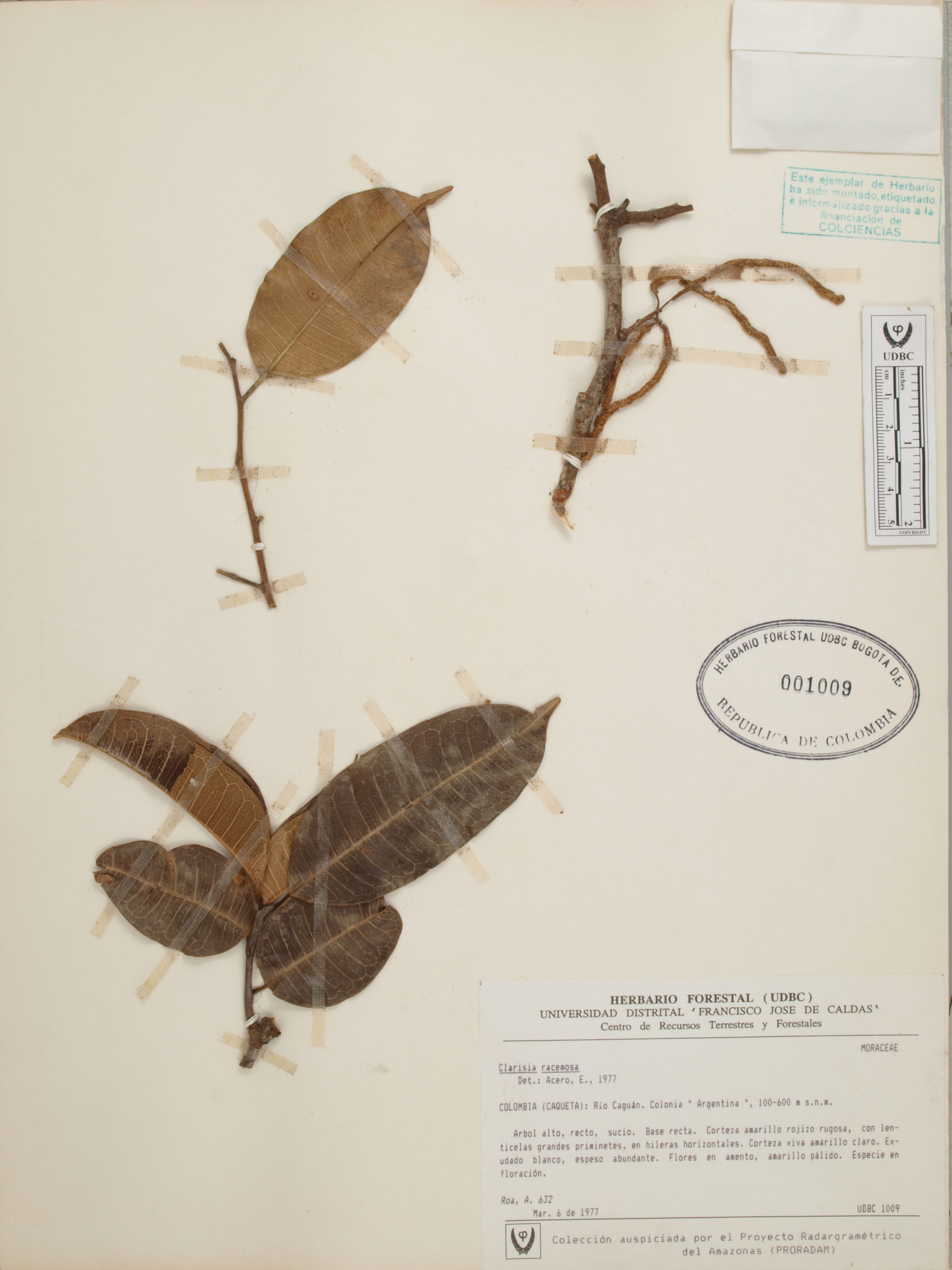 | dc.description | Fotografía del ejemplar Roa, A. 632, determinado como Clarisia racemosa en el año 1977 | |