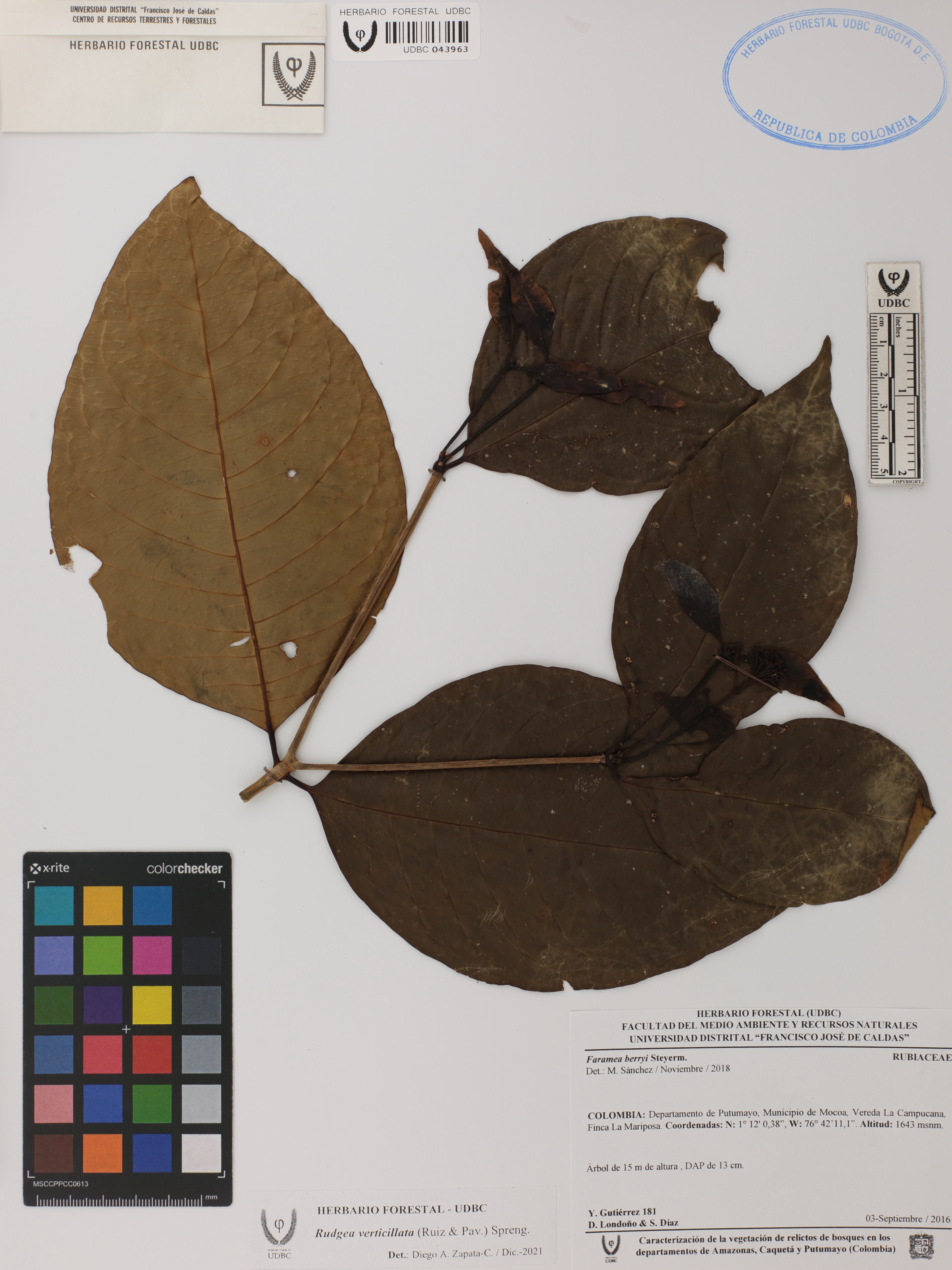 | dc.description | Fotografía del ejemplar Gutiérrez, Y. 181, determinado como Rudgea verticillata en el año 2021 | |