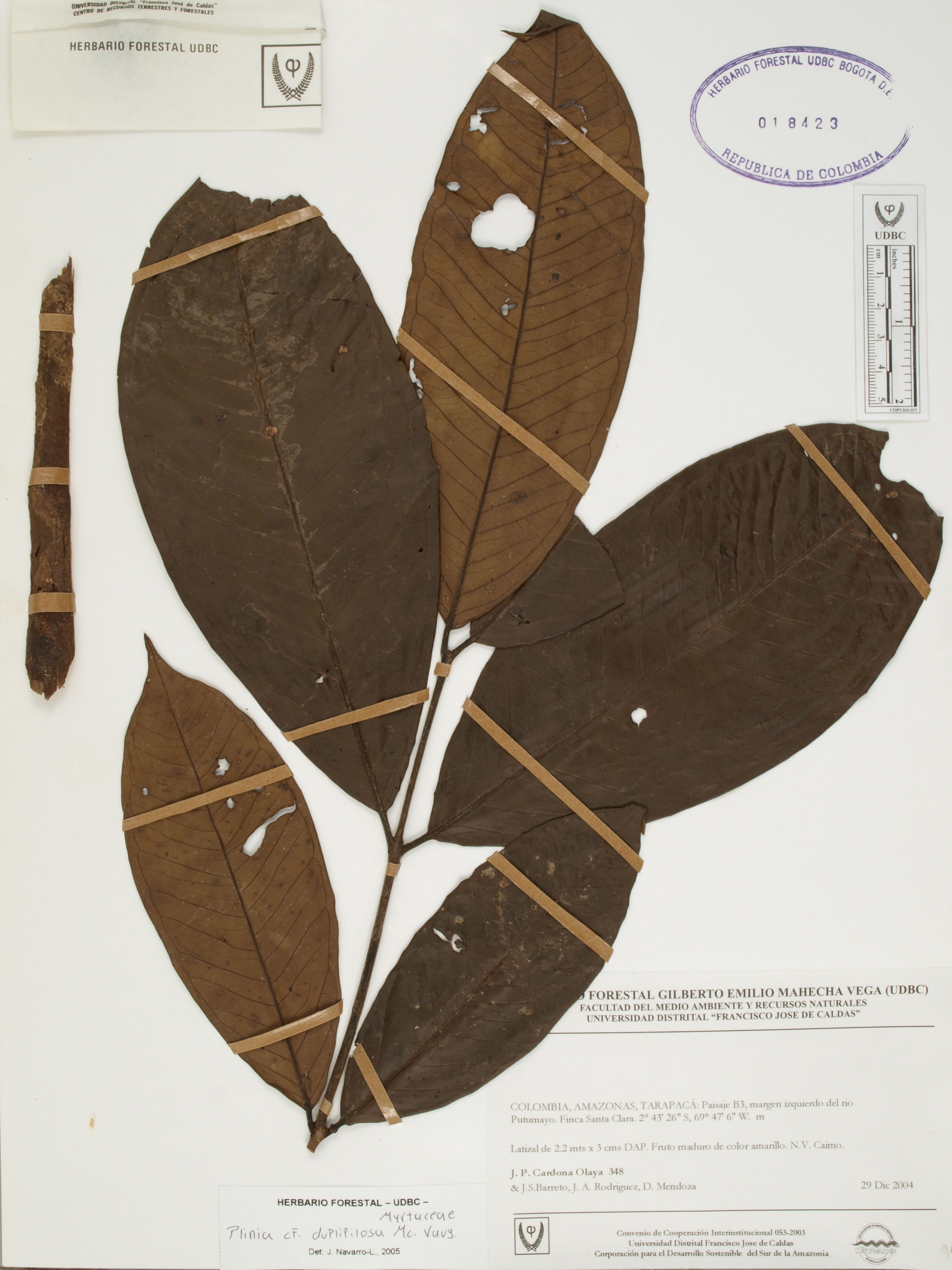 Fotografía del ejemplar Cardona, J. 348, determinado como Plinia duplipilosa en el año 2005