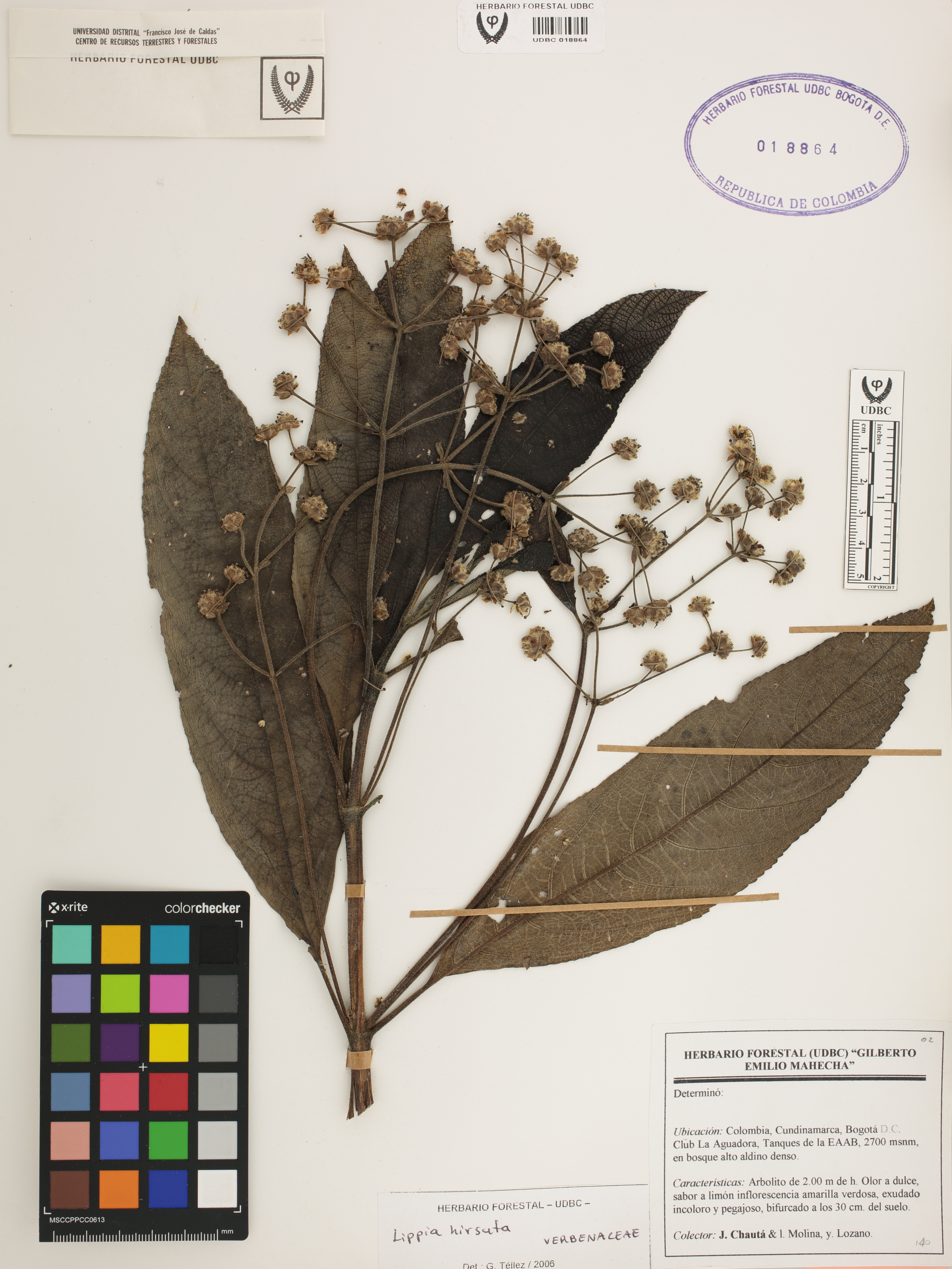 Fotografía del ejemplar Chautá, J. 504, determinado como Lippia hirsuta en el año 2006