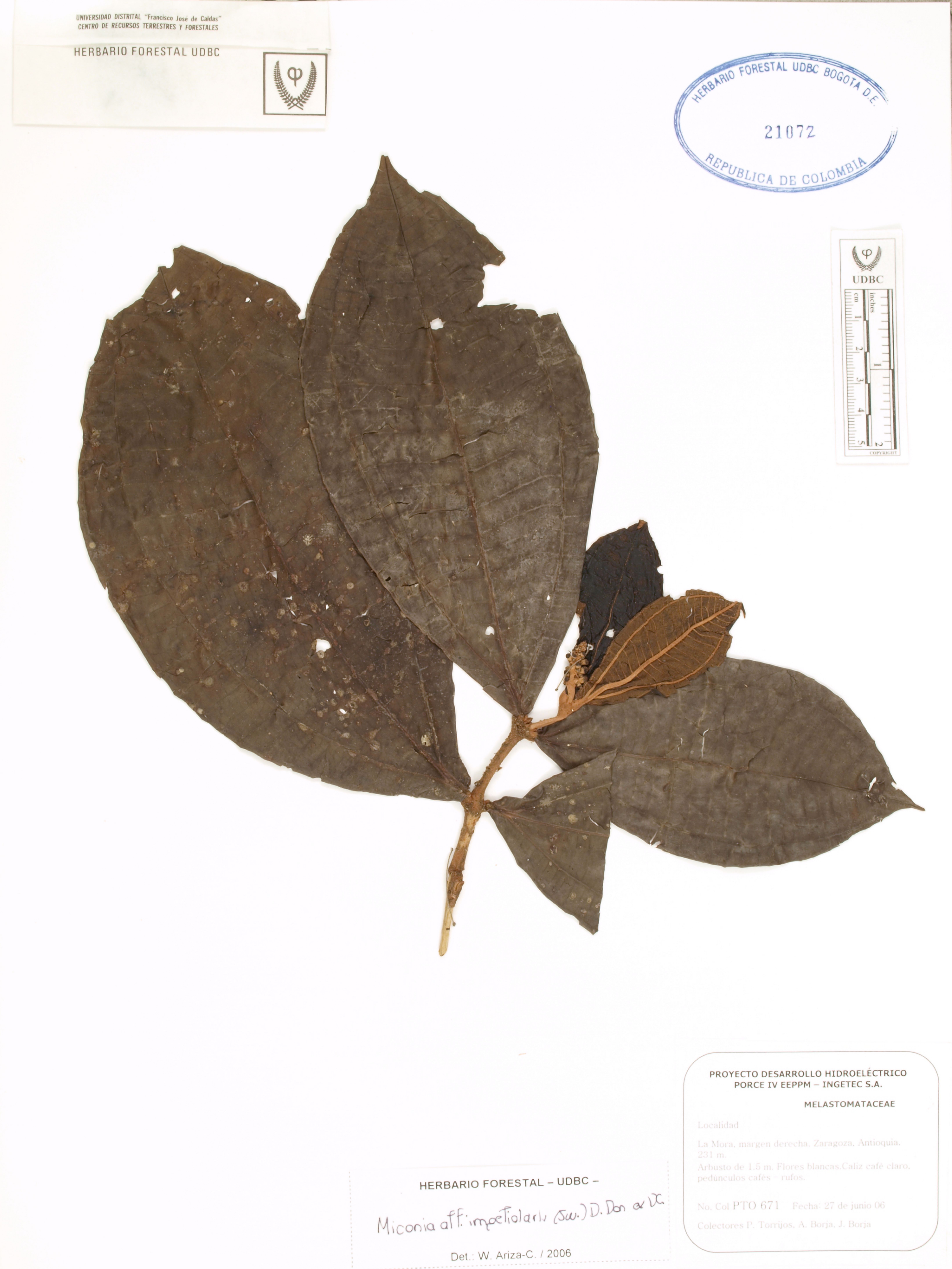 Fotografía del ejemplar Torrijos, P. 671, determinado como Miconia impetiolaris en el año 2006