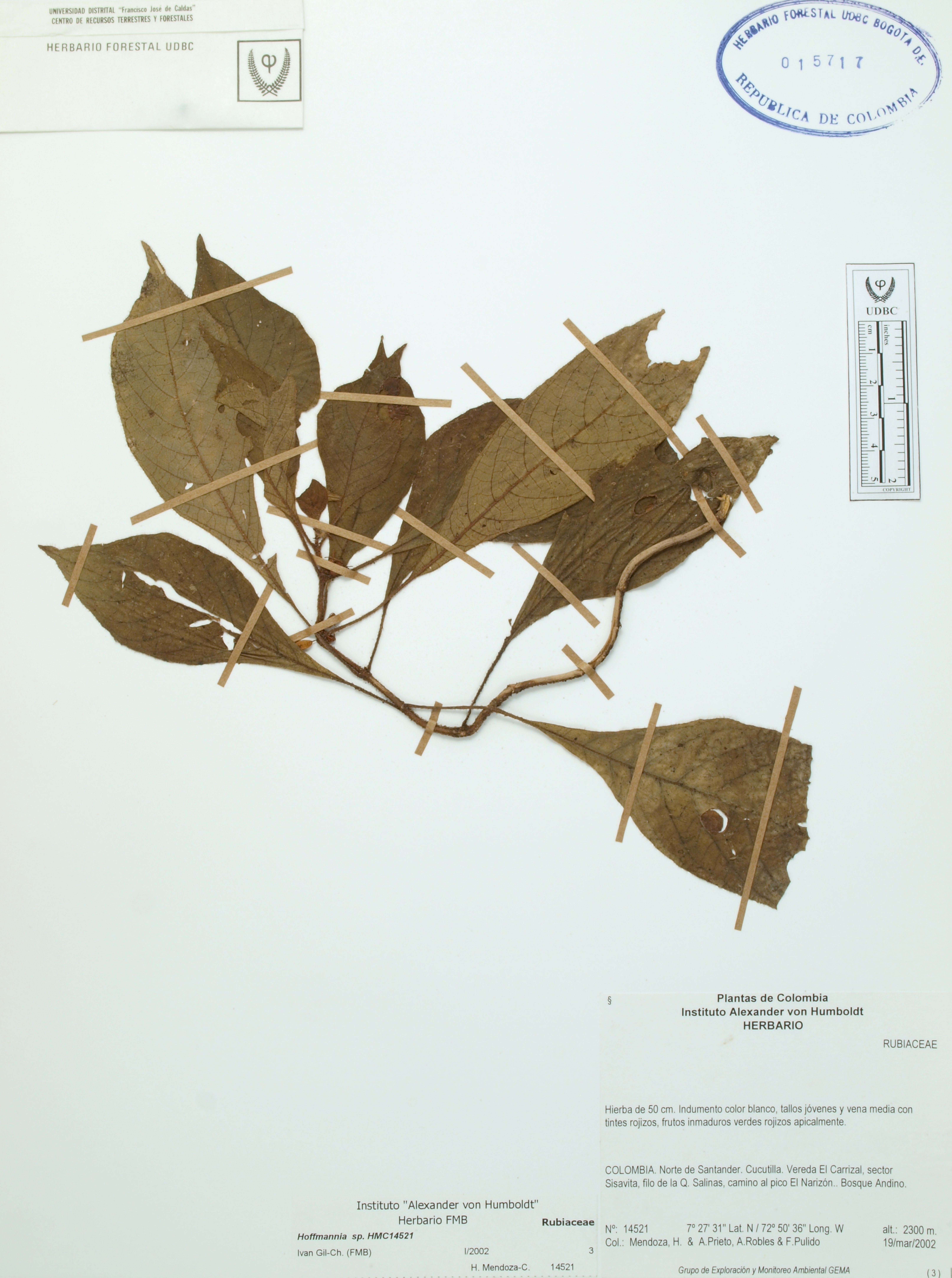 Fotografía del ejemplar Mendoza, H. 14521, determinado como Hoffmannia sp. en el año 2002