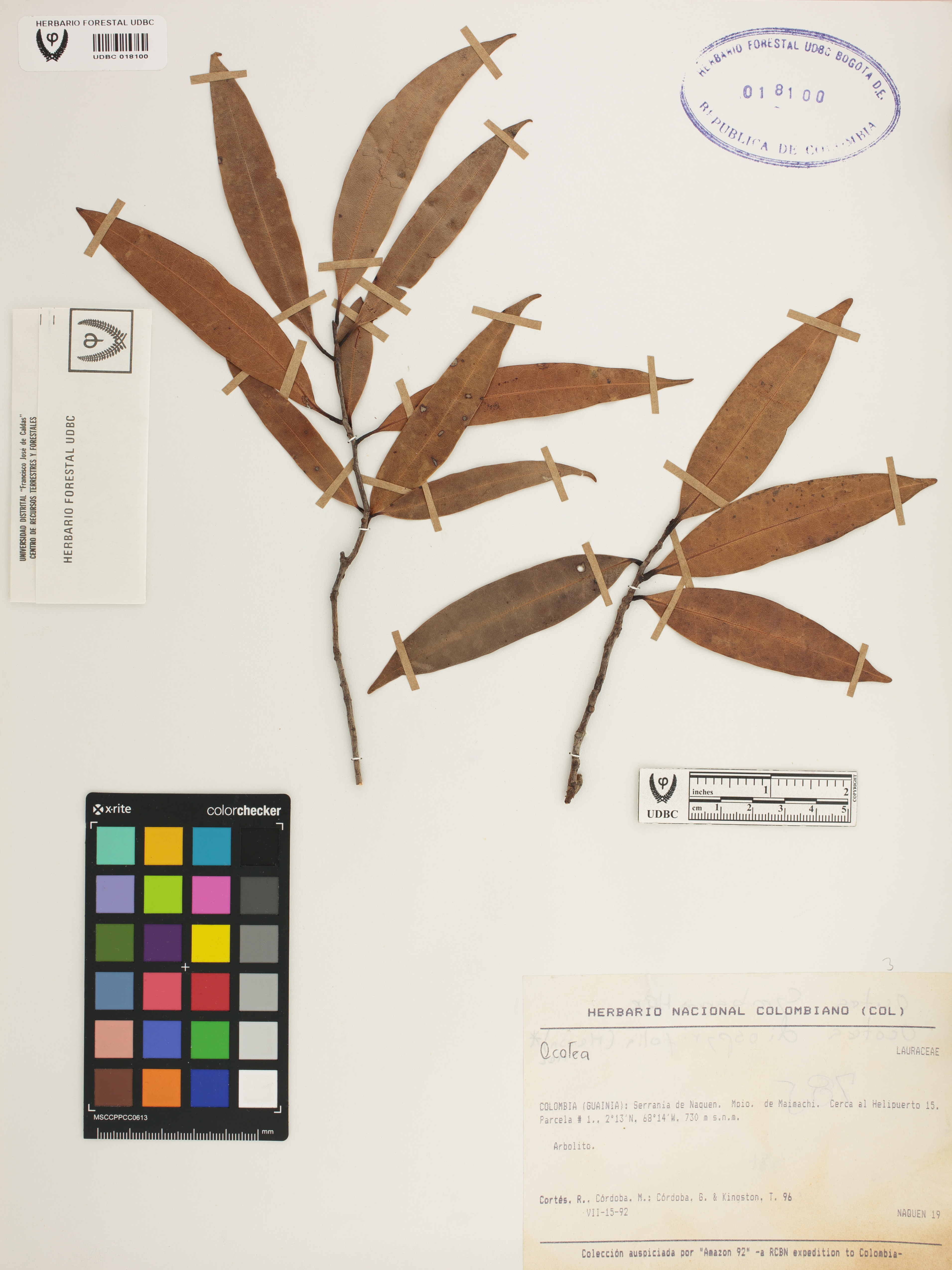 | dc.description | Fotografía del ejemplar Cortés, R. 96, determinado como Ocotea sp. | |