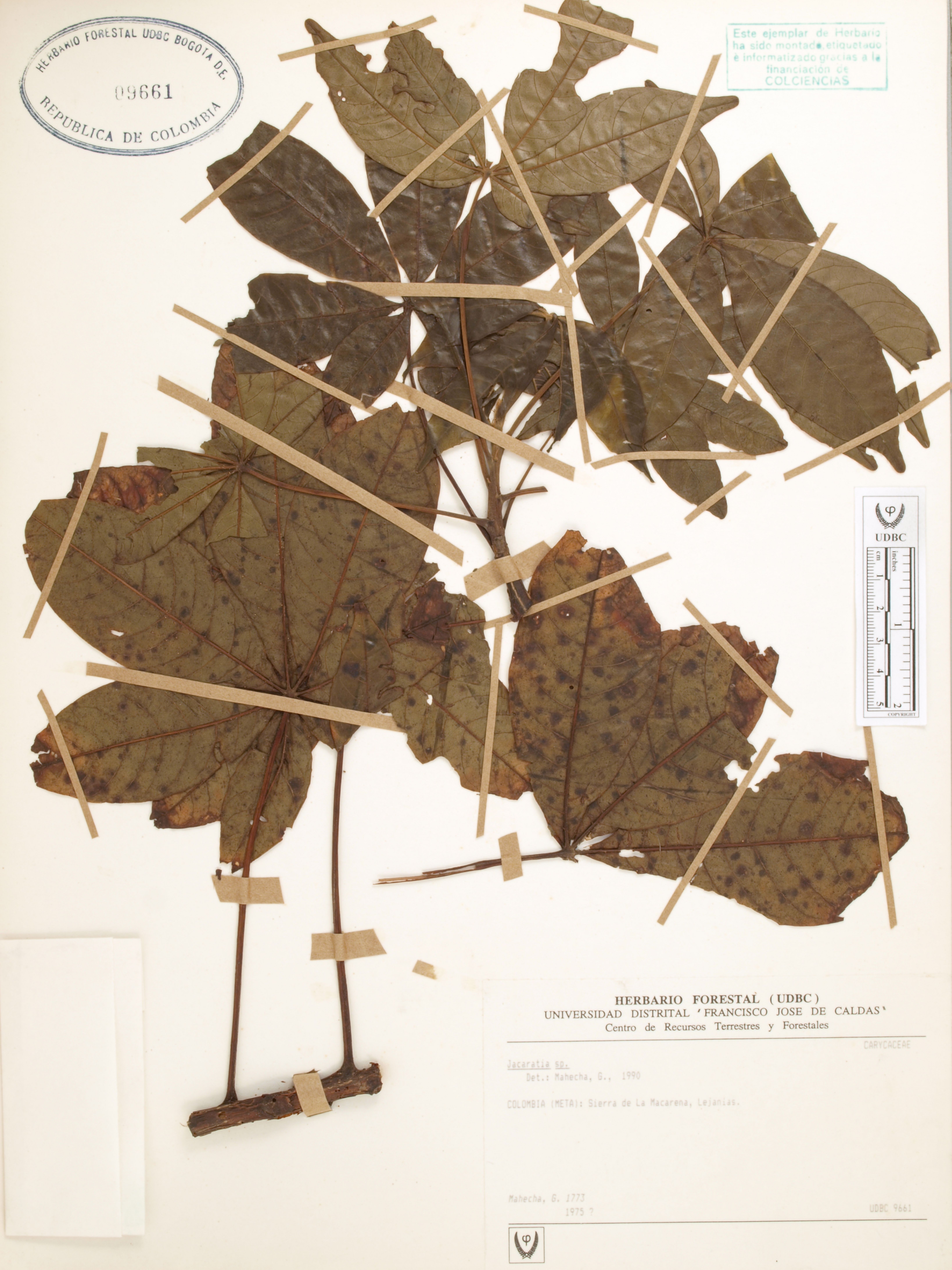 | dc.description | Fotografía del ejemplar Mahecha, G. 1773, determinado como Jacaratia sp. en el año 1990 | |