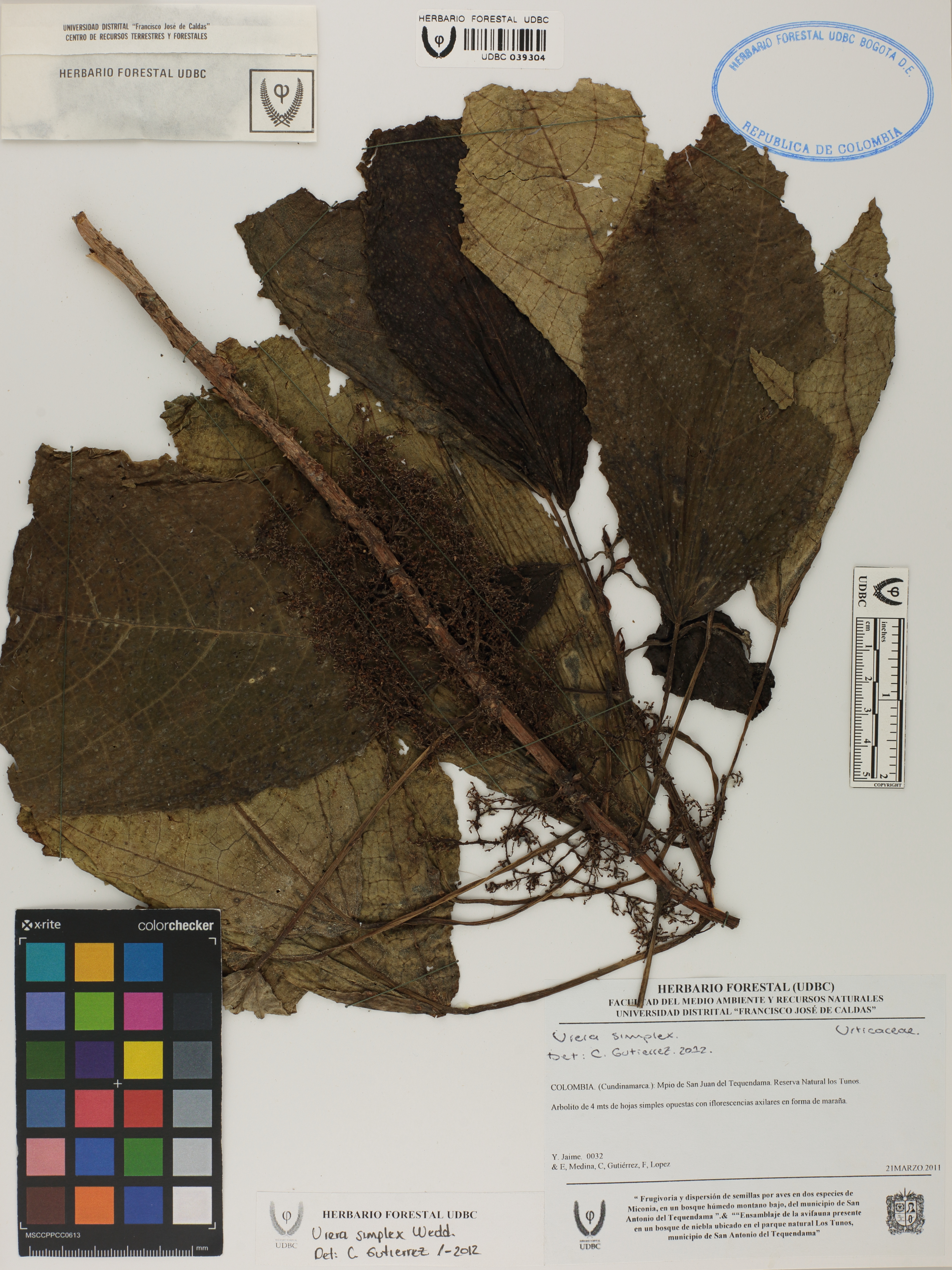 Fotografía del ejemplar Jaime, Y. 32, determinado como Urera simplex en el año 2012