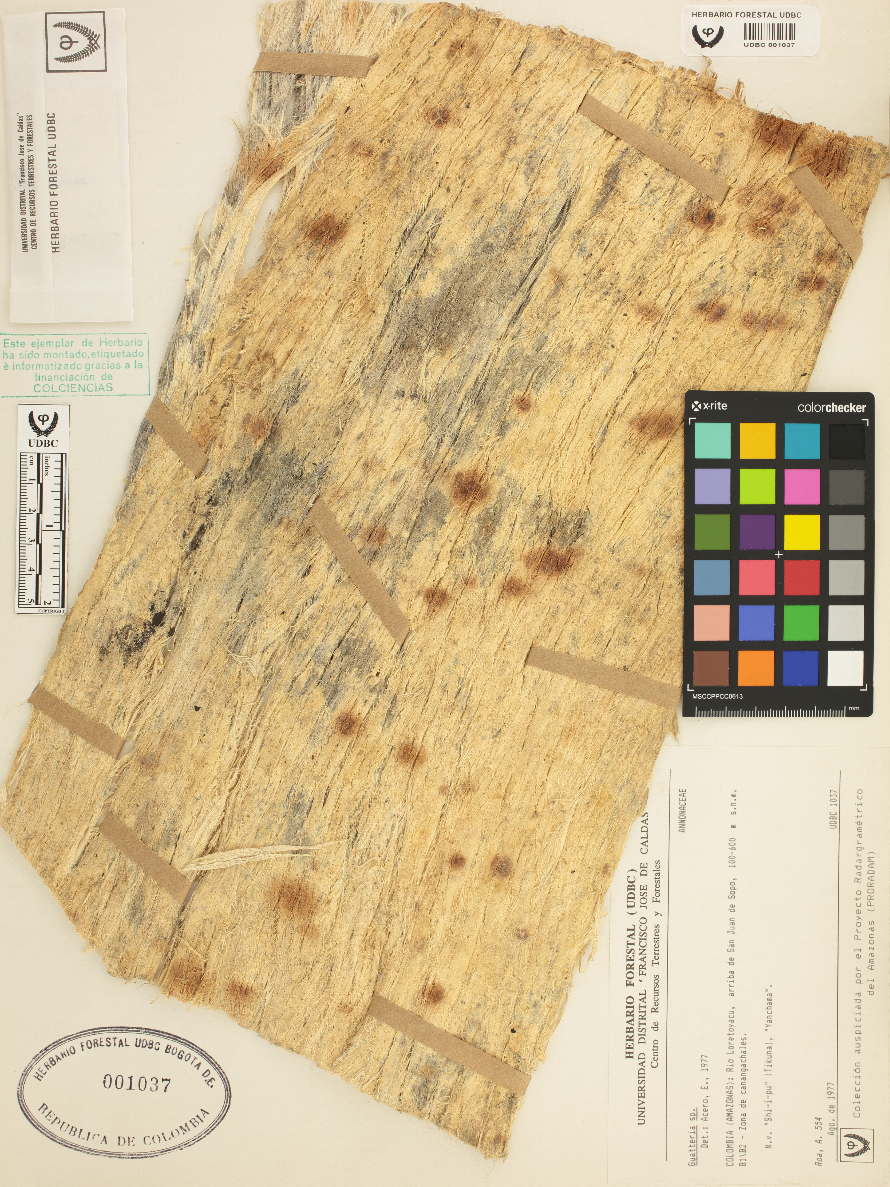 Fotografía del ejemplar Roa, A. 554, determinado como Guatteria sp. en el año 1977