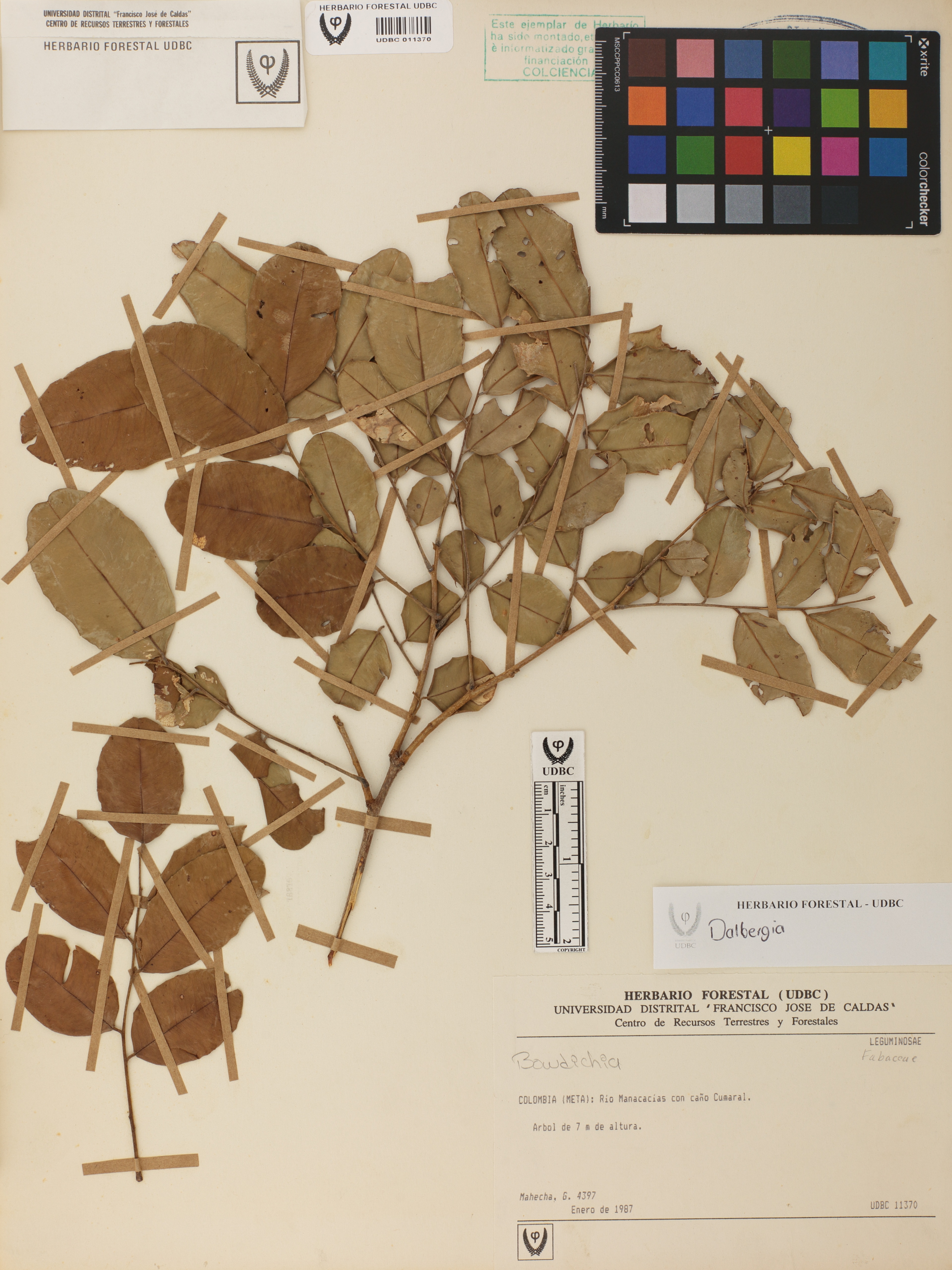Fotografía del ejemplar Mahecha, G. 4339, determinado como Bowdichia sp. en el año 1995