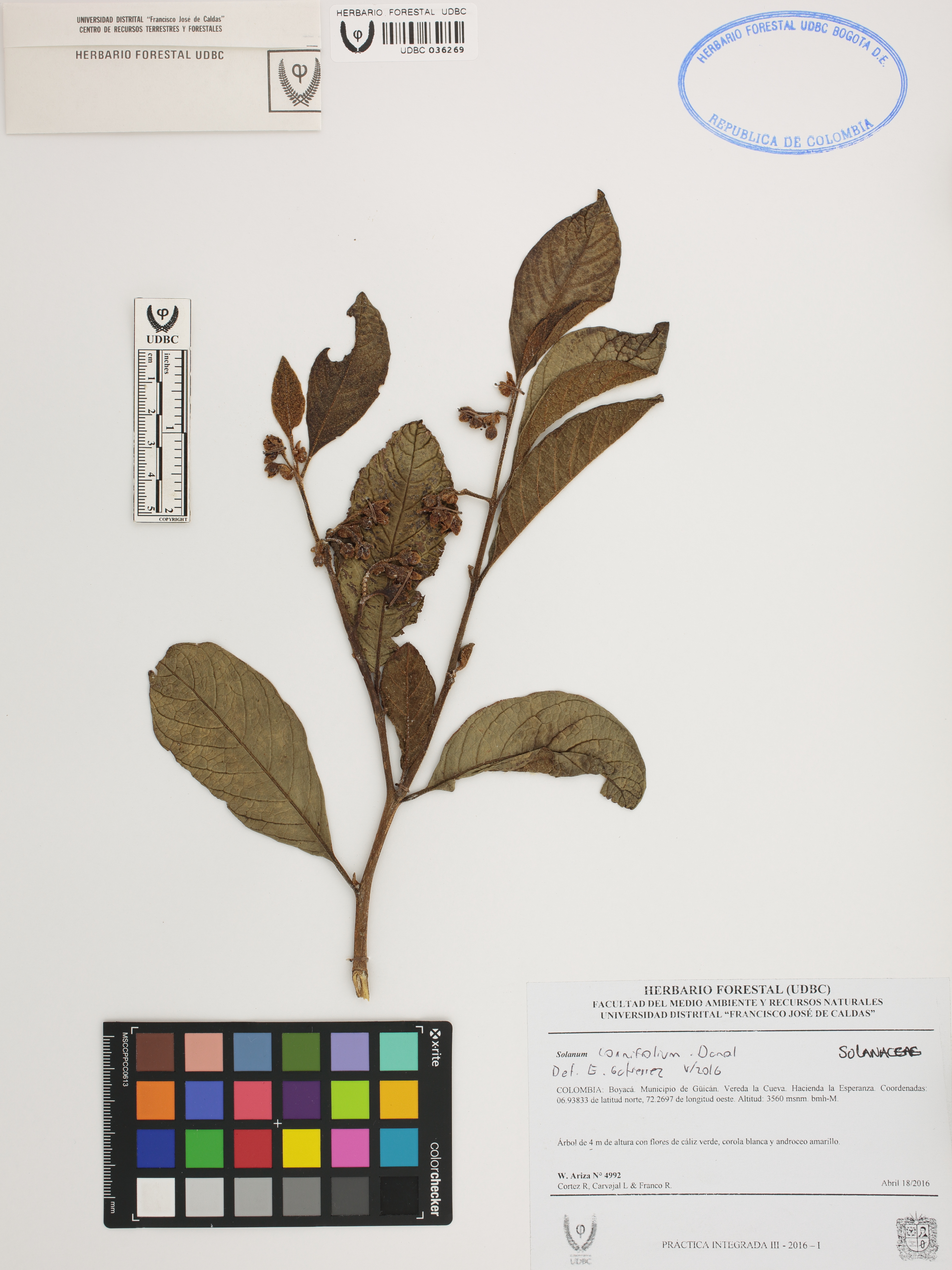 Fotografía del ejemplar Ariza, W. 4992, determinado como Solanum cornifolium en el año 2016