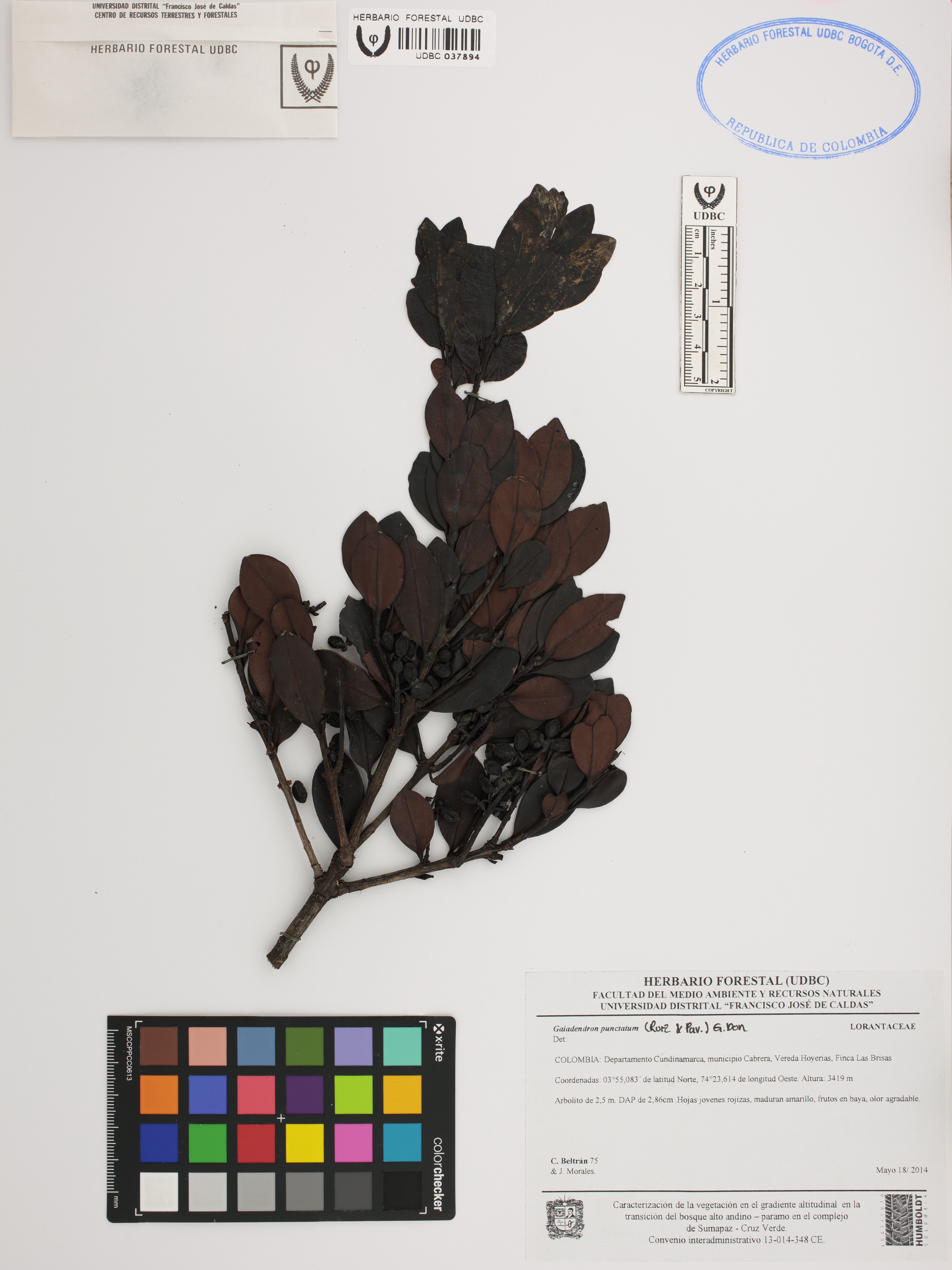 | dc.description | Fotografía del ejemplar Beltrán, C. 75, determinado como Gaiadendron punctatum | |