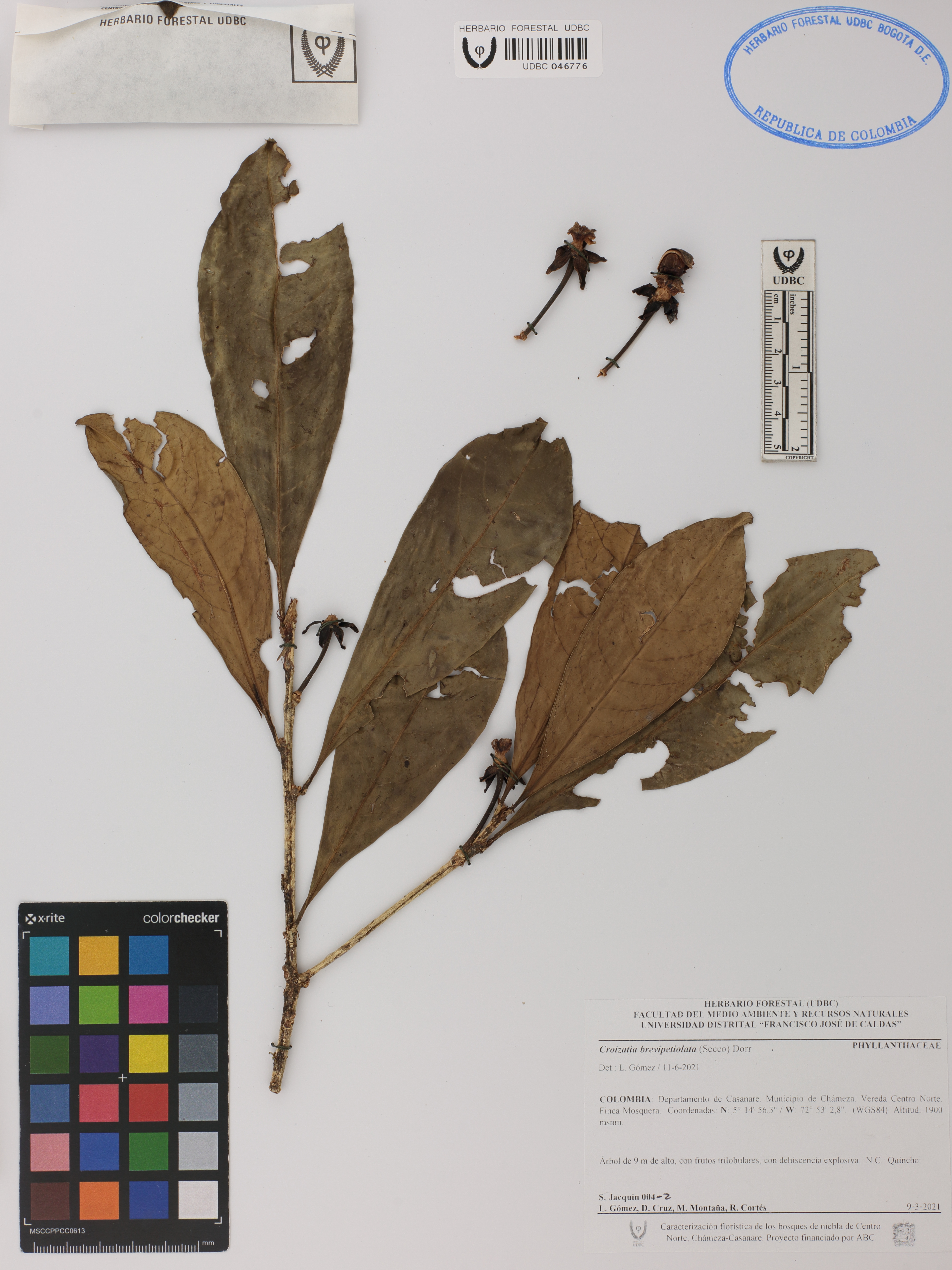 Fotografía del ejemplar Jacquin, S. 4-2, determinado como Croizatia brevipetiolata en el año 2021