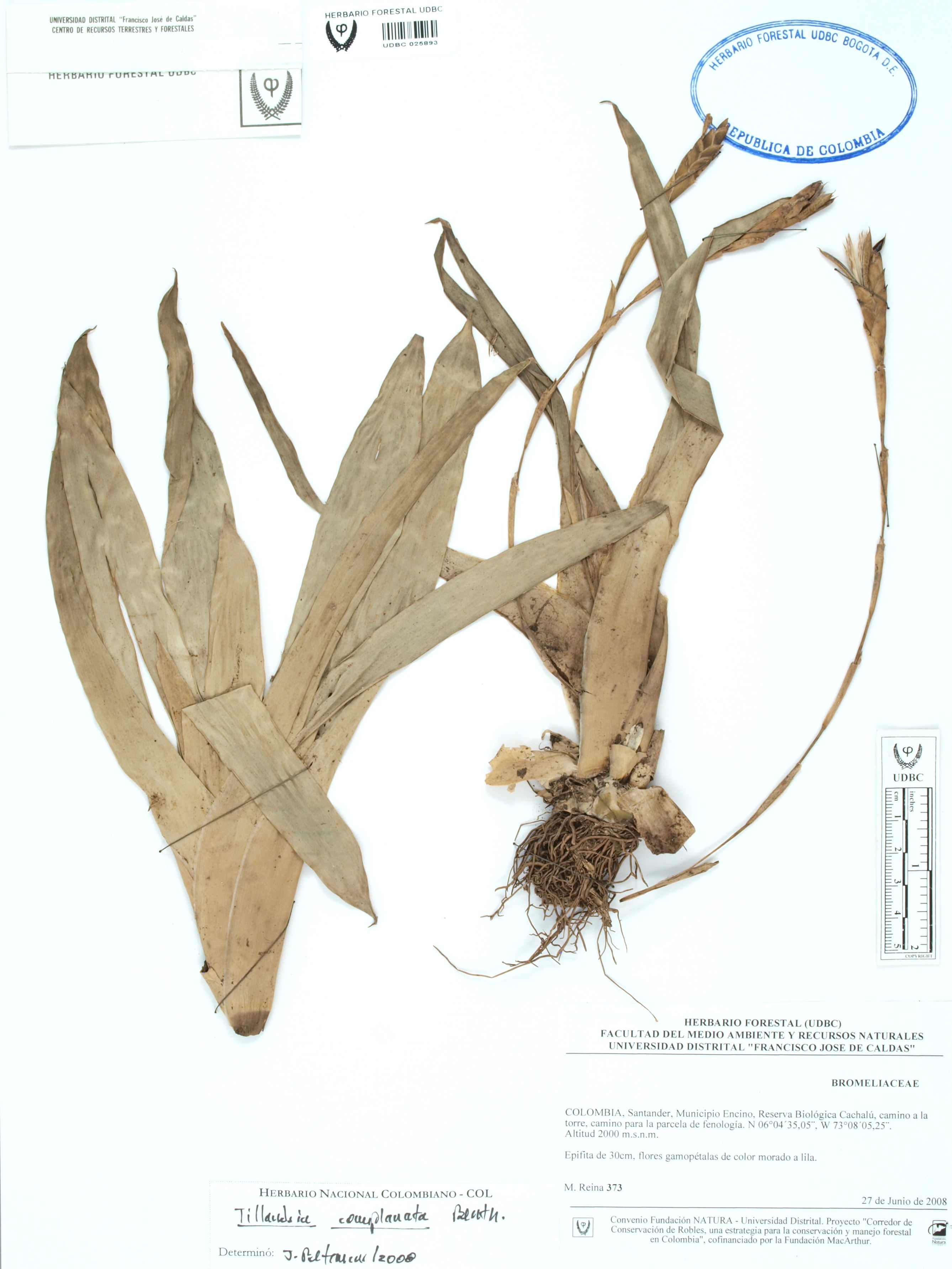 Fotografía del ejemplar Reina, M. 373, determinado como Tillandsia complanata en el año 2008