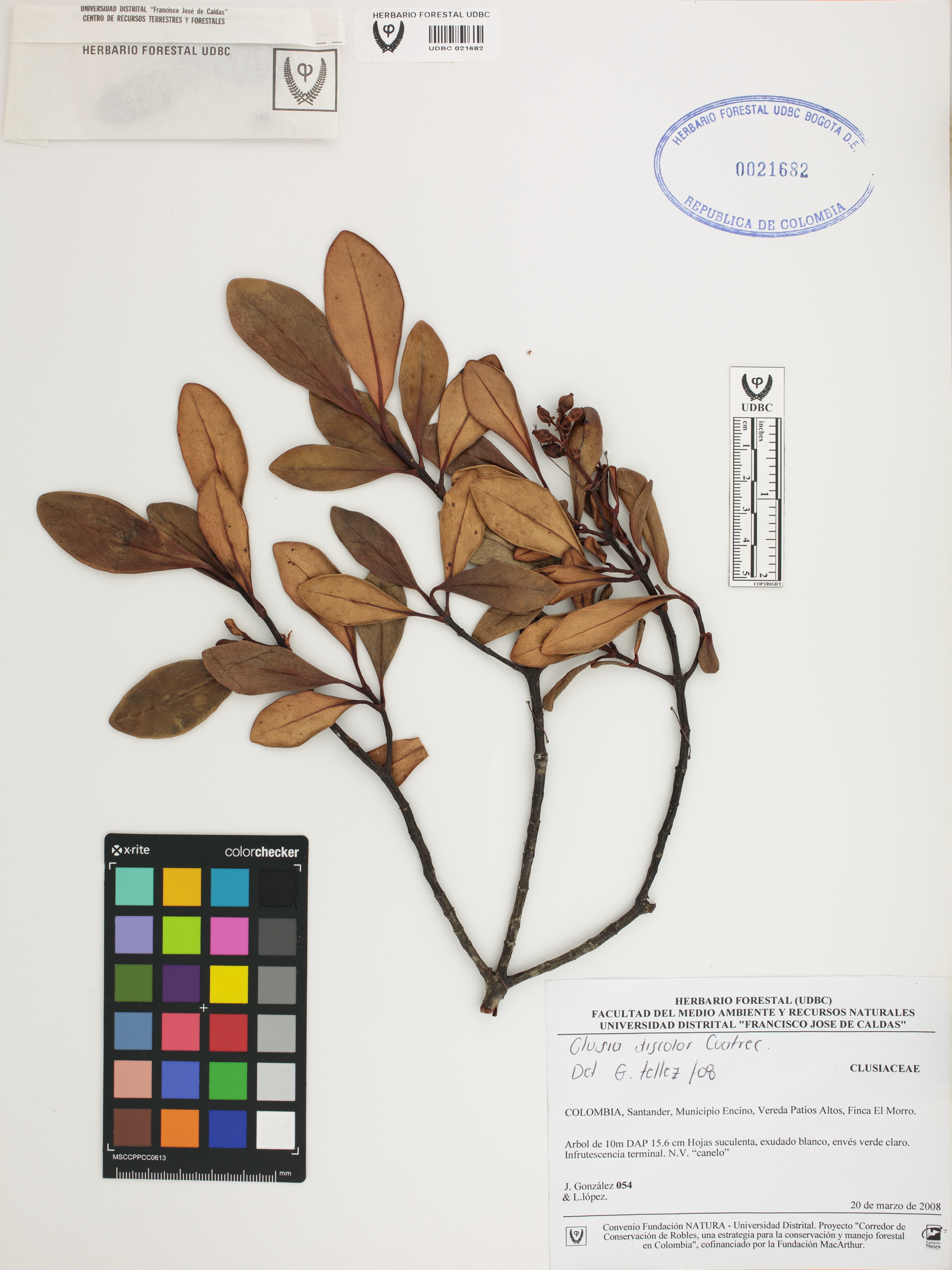 Fotografía del ejemplar González, J. 54, determinado como Clusia discolor en el año 2008