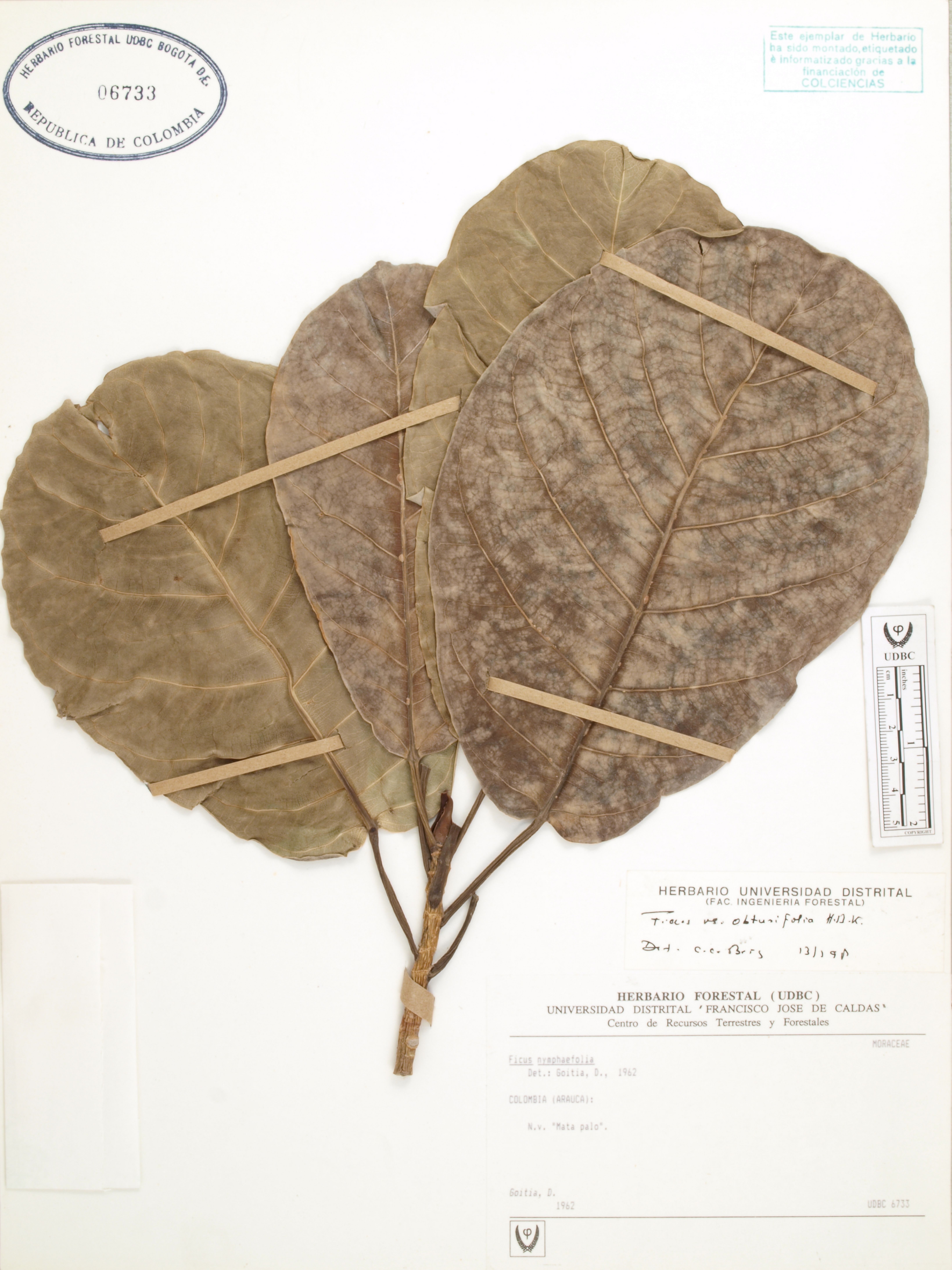 Fotografía del ejemplar Goitia, D., determinado como Ficus obtusifolia en el año 1997