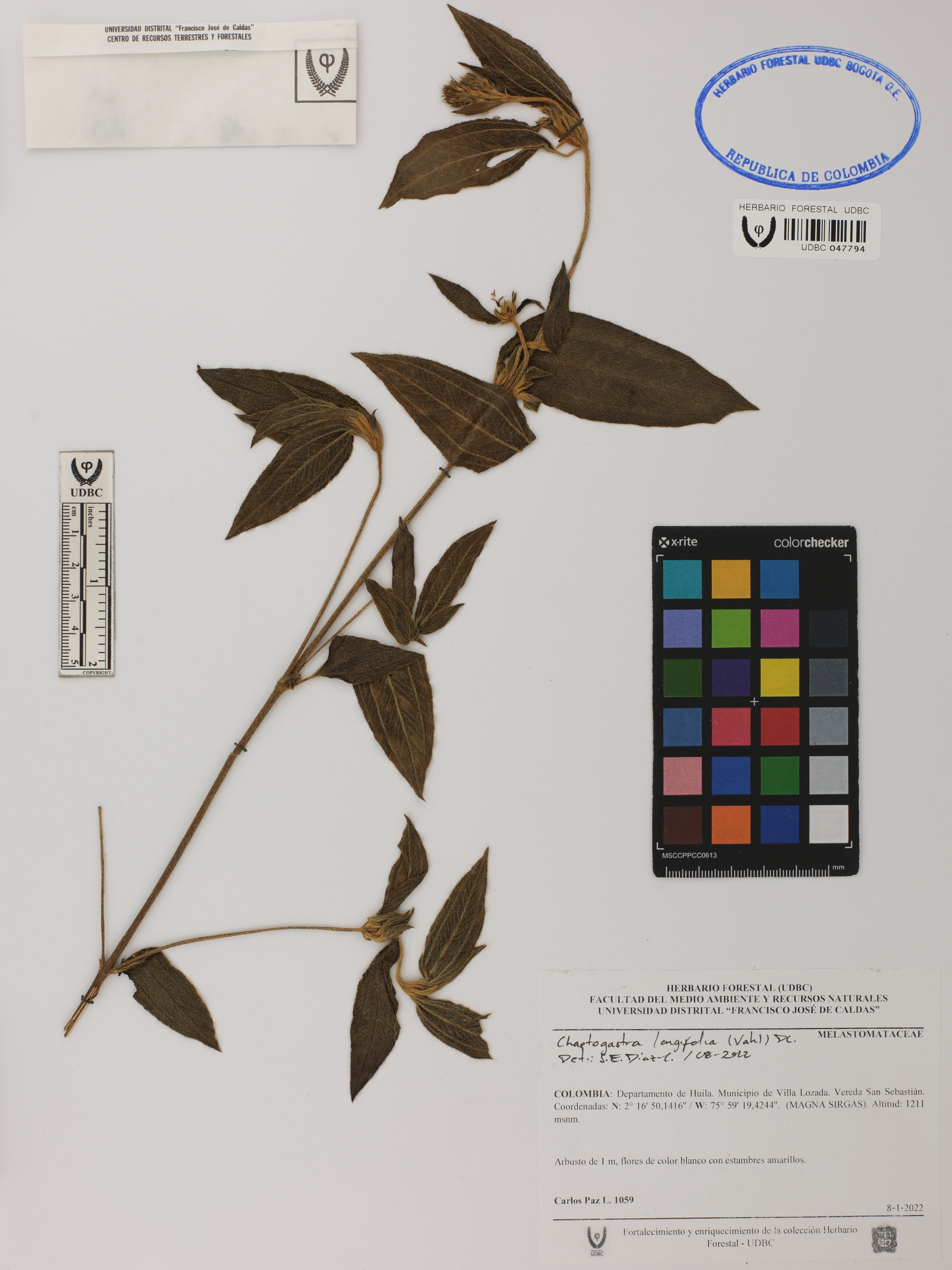 Fotografía del ejemplar Paz-L., C. 1059, determinado como Chaetogastra longifolia en el año 2022
