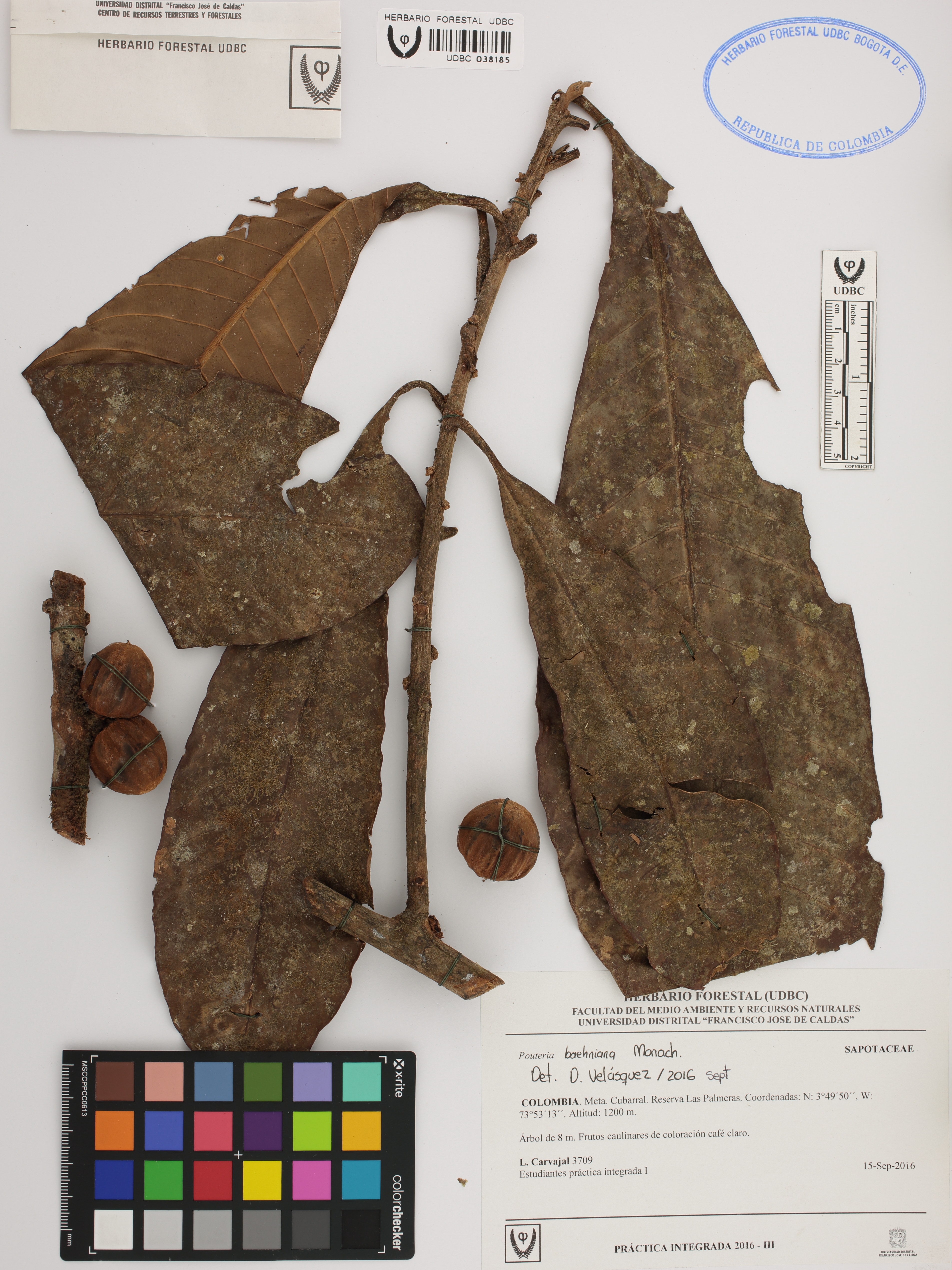 Fotografía del ejemplar Carvajal, L. 3709, determinado como Pouteria baehniana en el año 2016