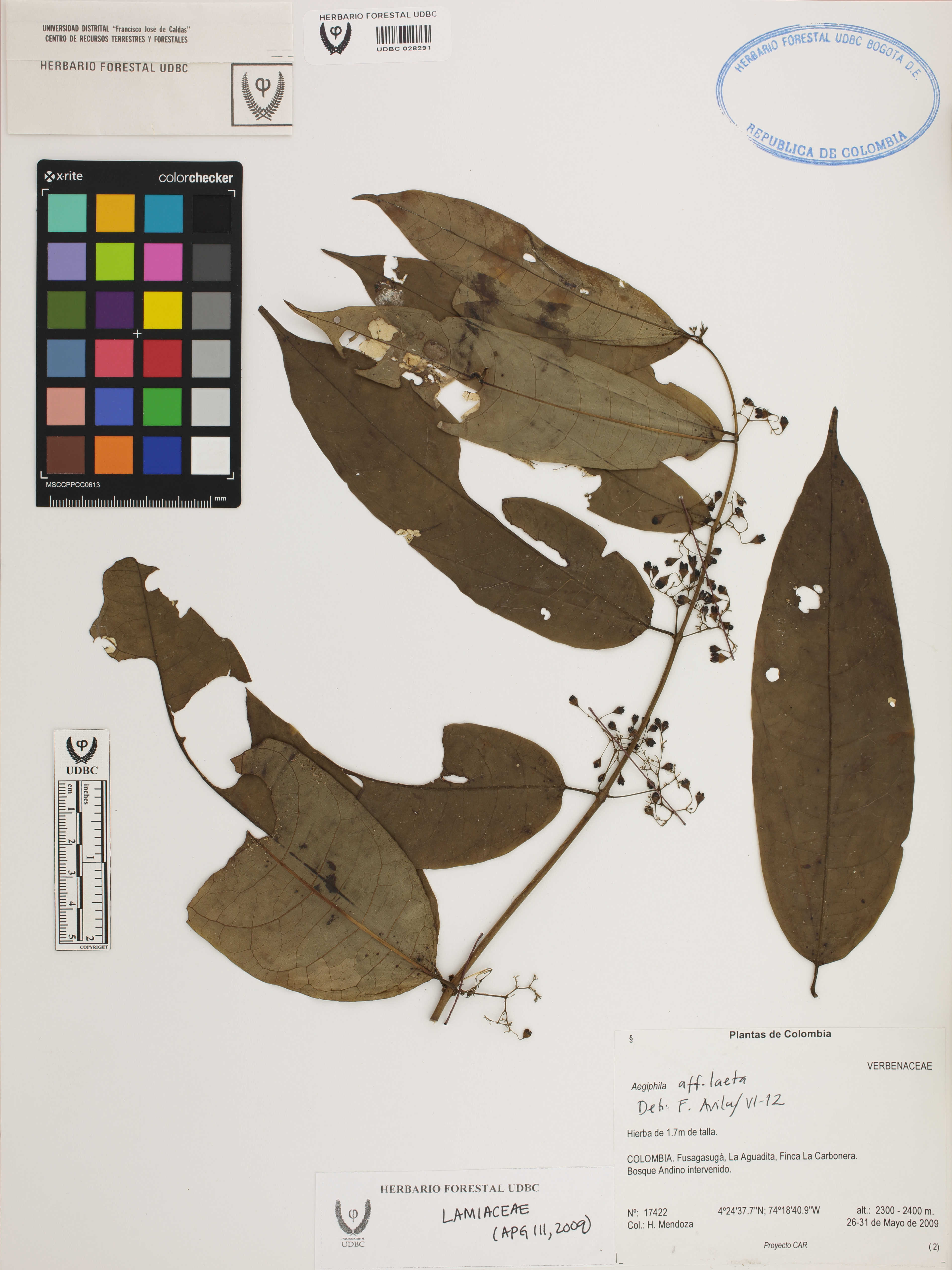 | dc.description | Fotografía del ejemplar Mendoza, H. 17422, determinado como Aegiphila laeta en el año 2012 | |