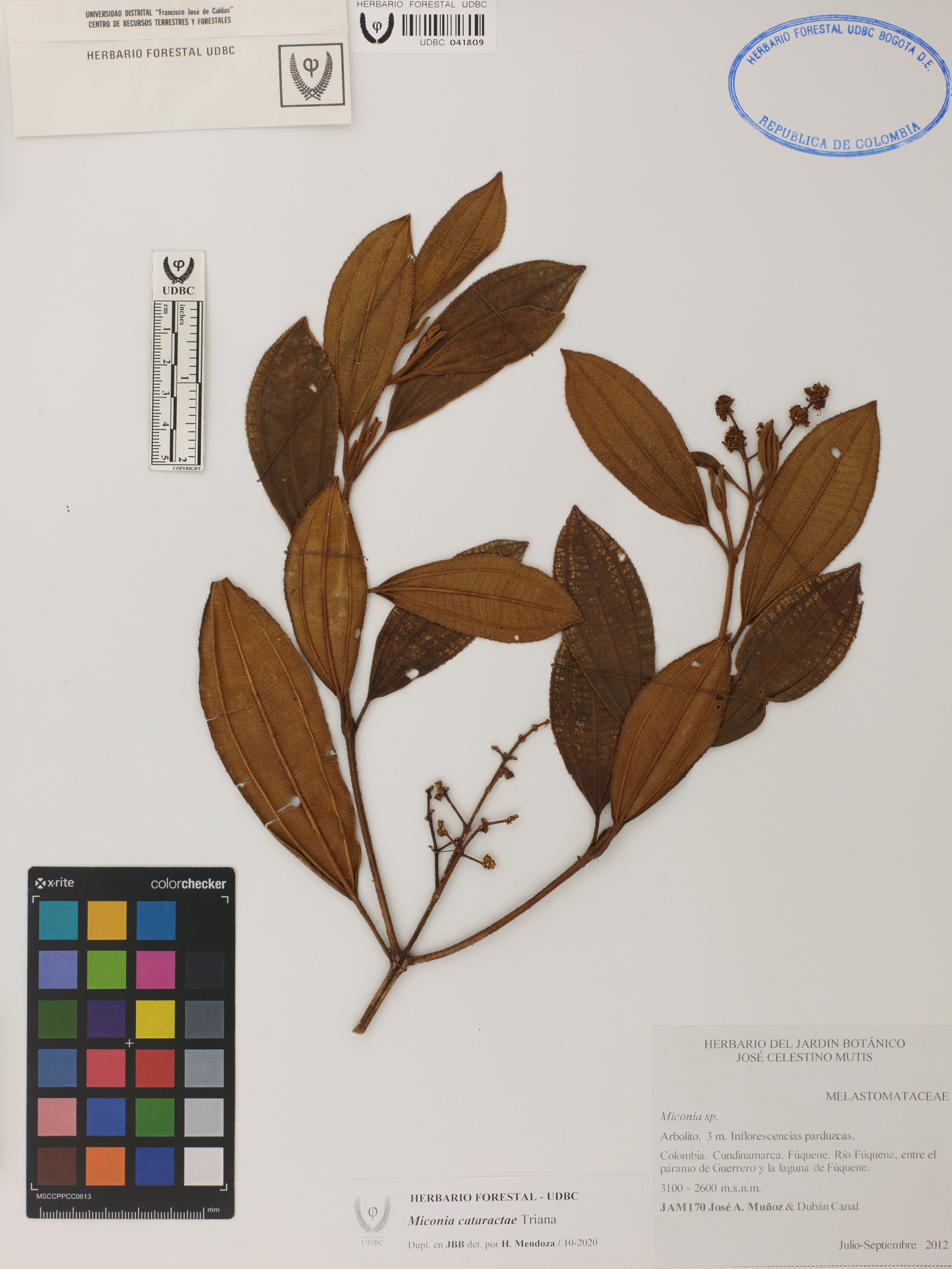 | dc.description | Fotografía del ejemplar Muñoz, J. 170, determinado como Miconia cataractae en el año 2020 | |