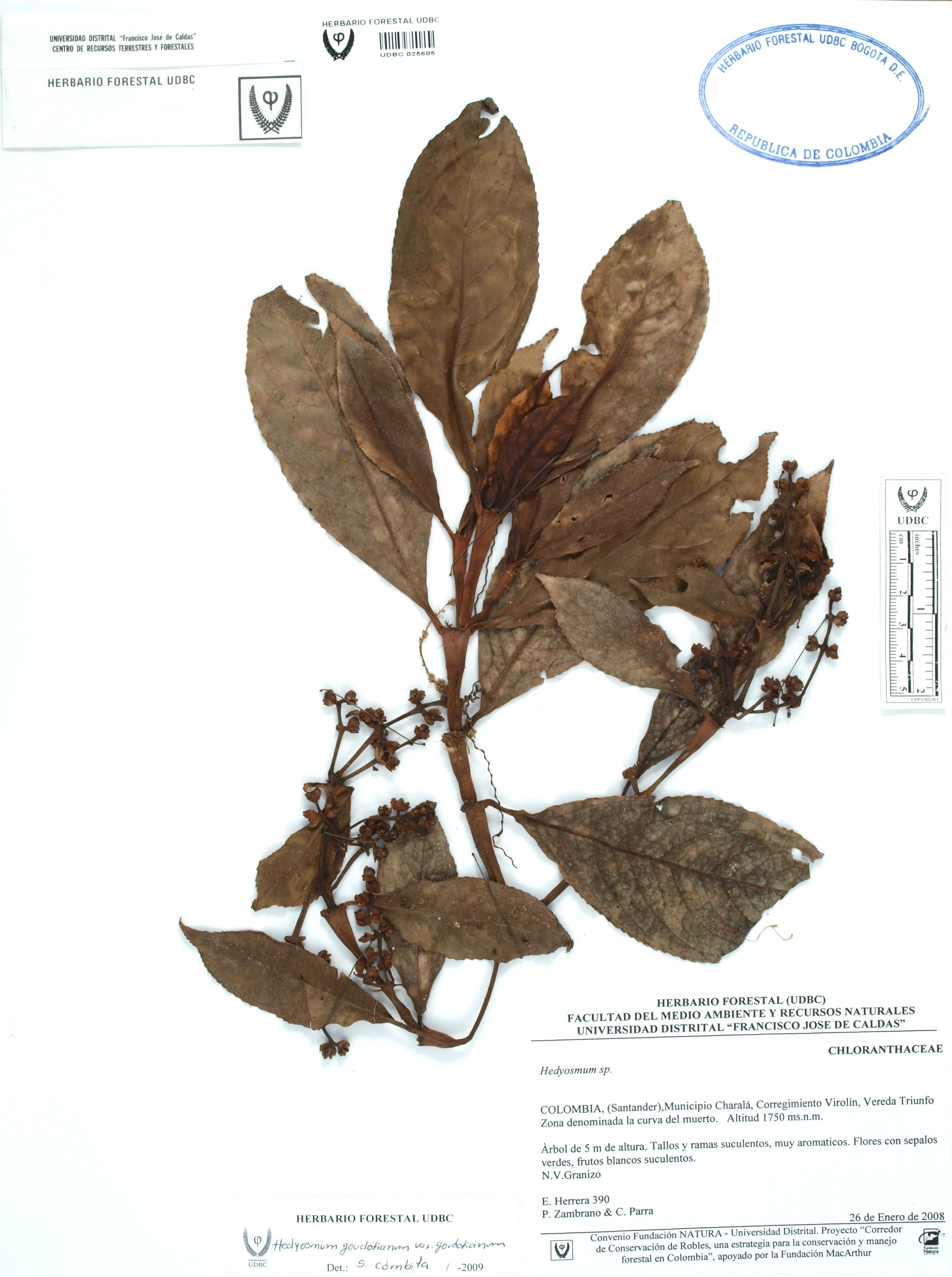 | dc.description | Fotografía del ejemplar Herrera, E. 390, determinado como Hedyosmum goudotianum var. goudotianum en el año 2009 | |