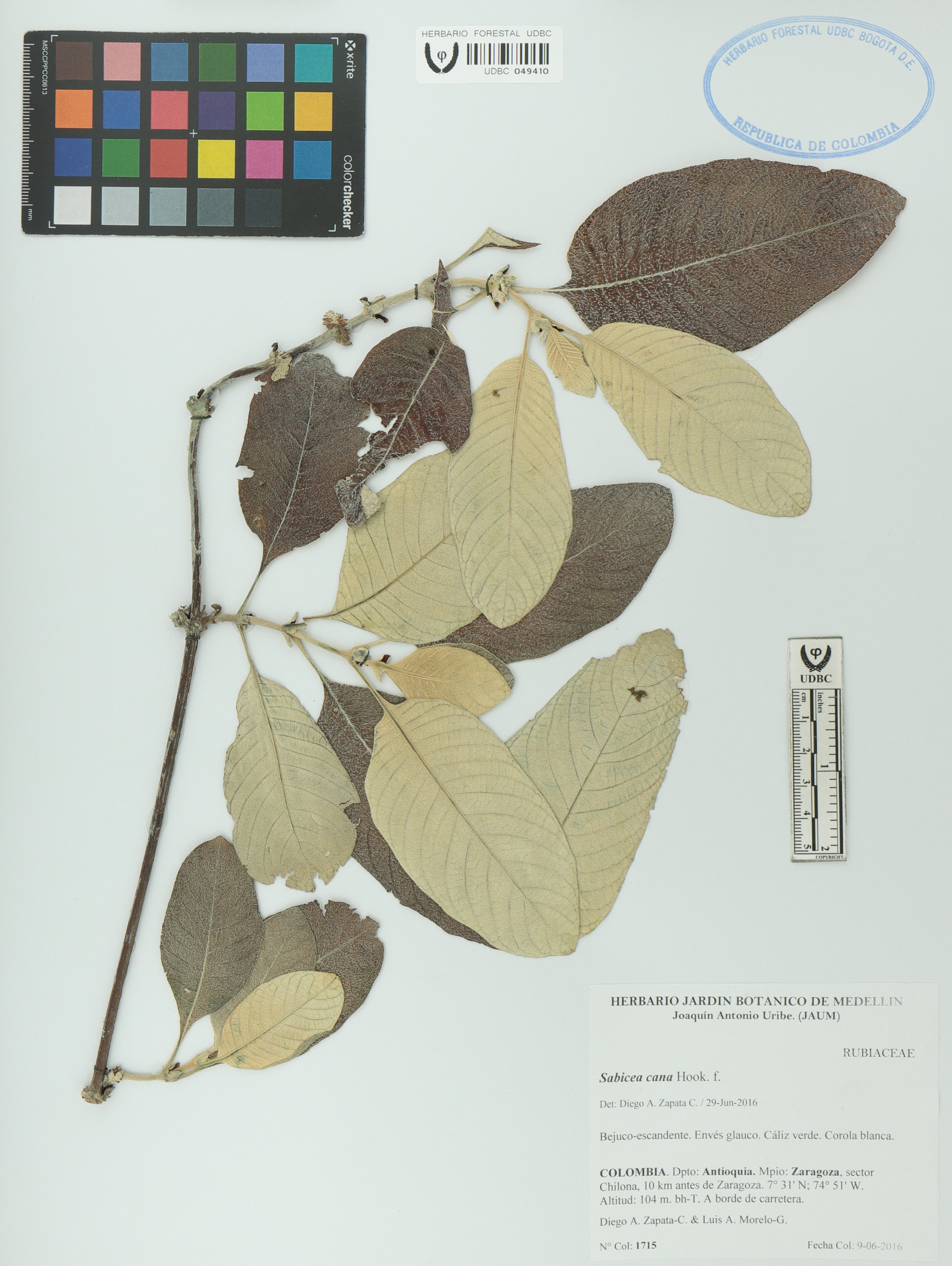 Fotografía del ejemplar Zapata-C., D. 1715, determinado como Sabicea cana en el año 2016