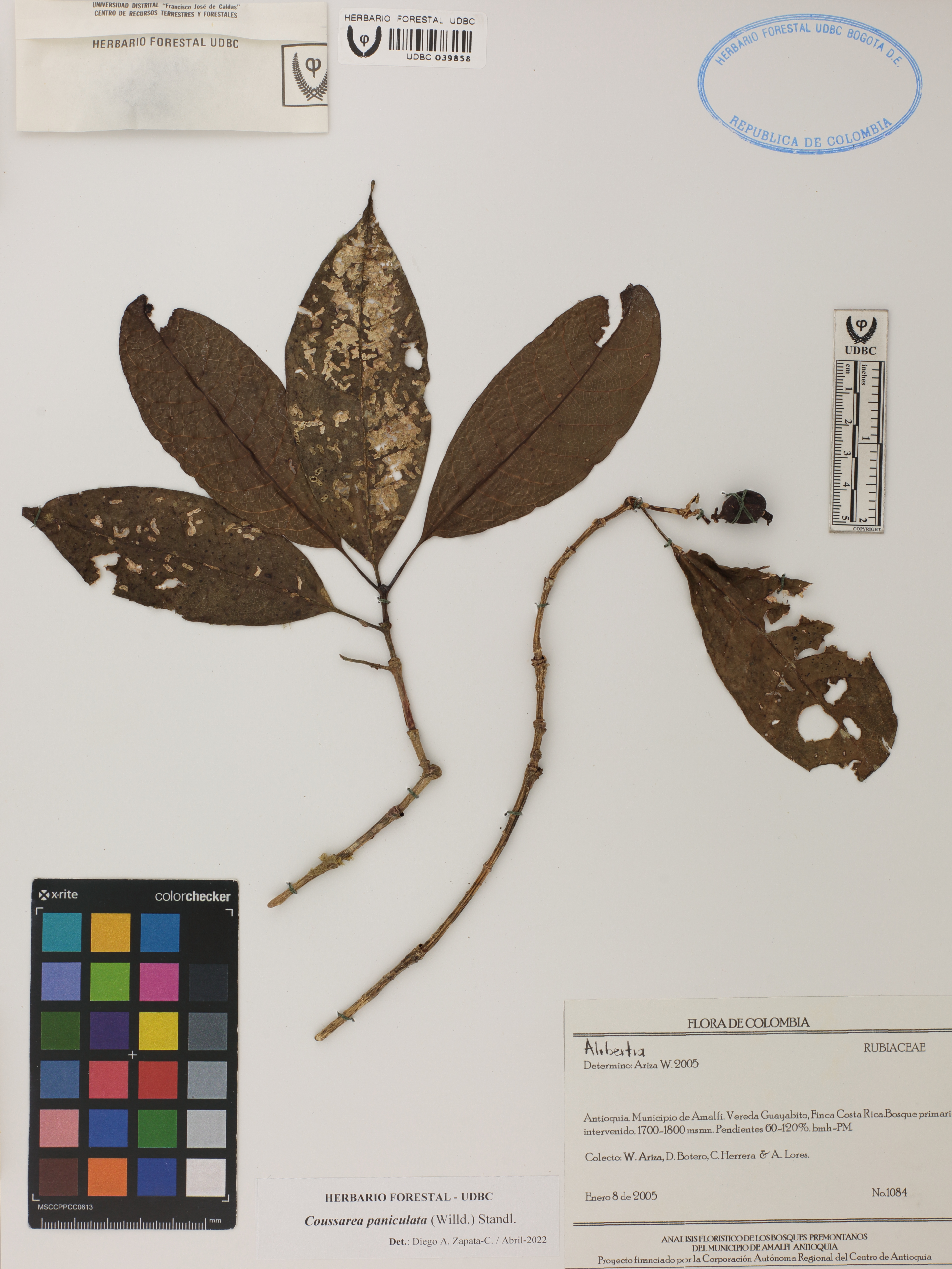 | dc.description | Fotografía del ejemplar Ariza, W. 1084, determinado como Coussarea paniculata en el año 2022 | |
