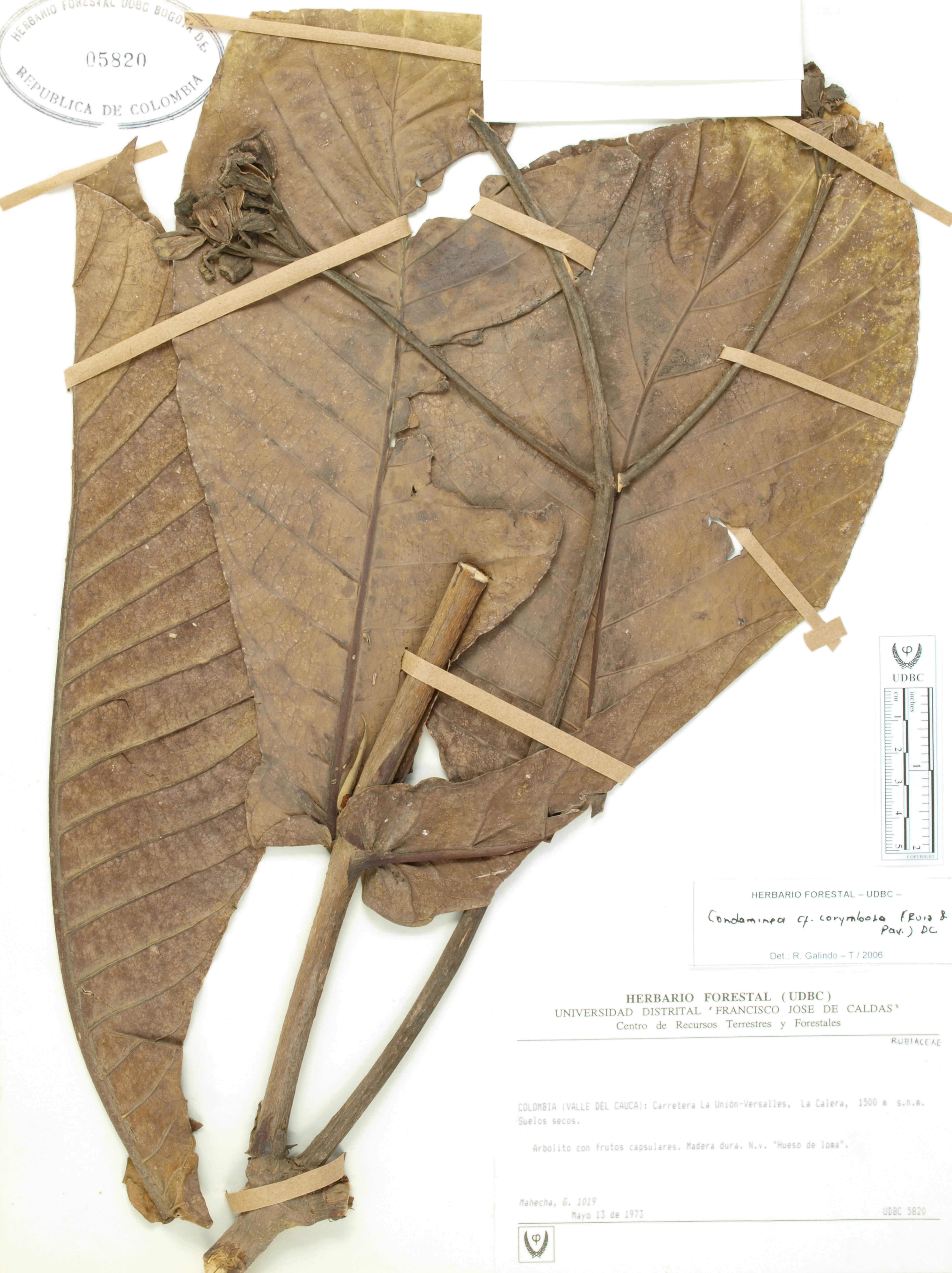| dc.description | Fotografía del ejemplar Mahecha, G. 1019, determinado como Condaminea corymbosa en el año 2006 | |