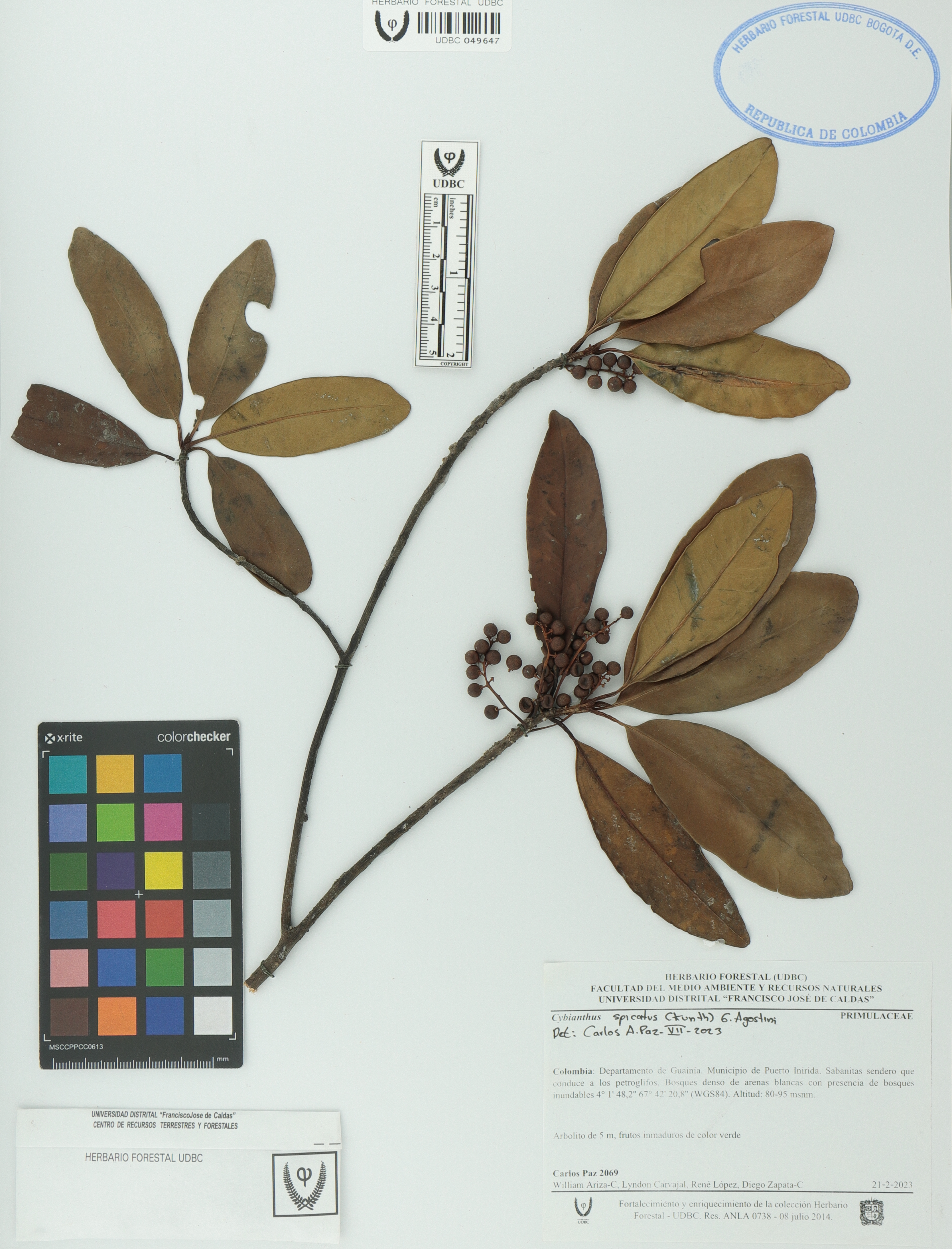 | dc.description | Fotografía del ejemplar Paz, C. 2069, determinado como Cybianthus spicatus en el año 2023 | |