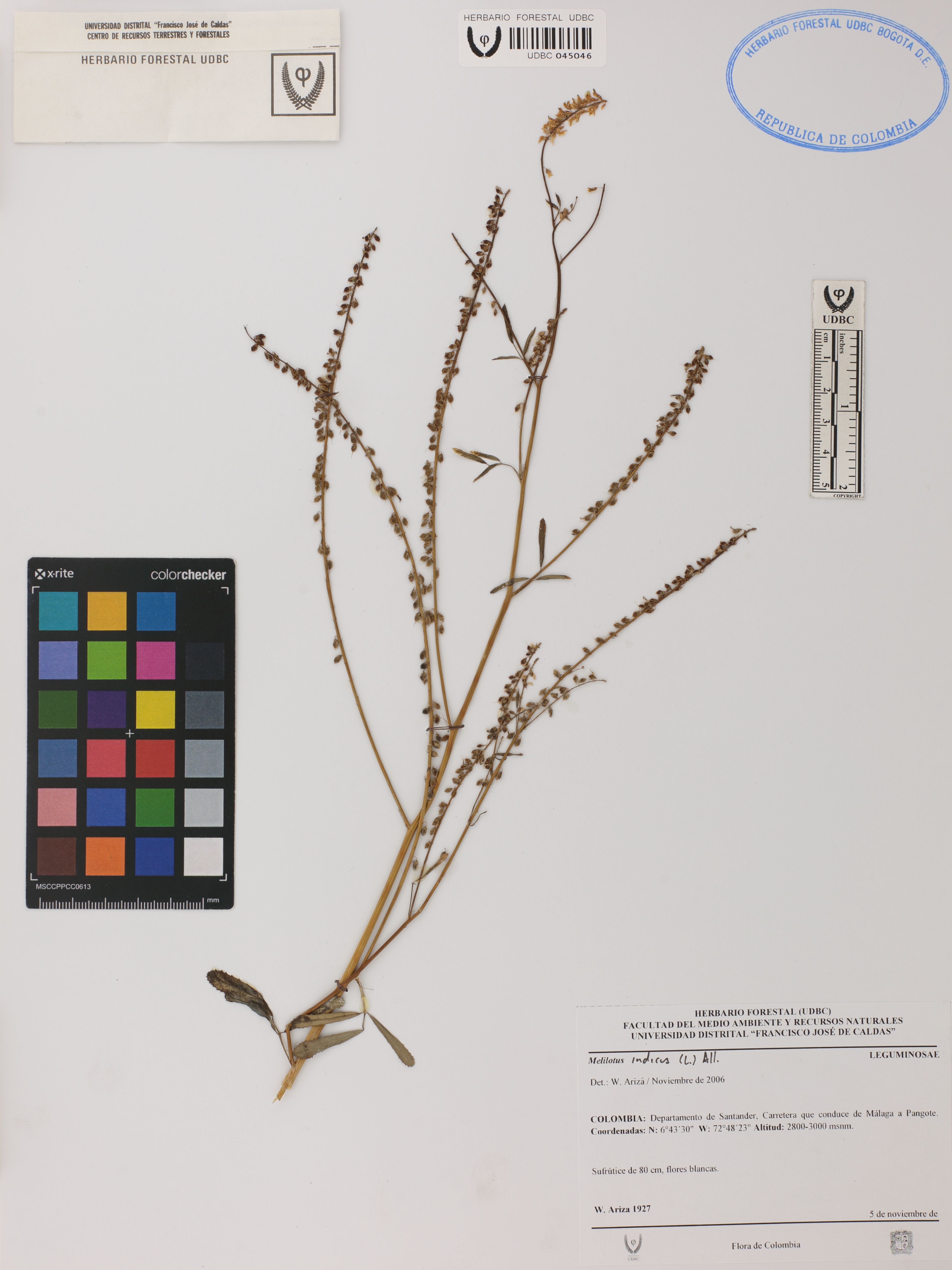 Fotografía del ejemplar Ariza-Cortés, W. 1927, determinado como Melilotus indicus en el año 2021