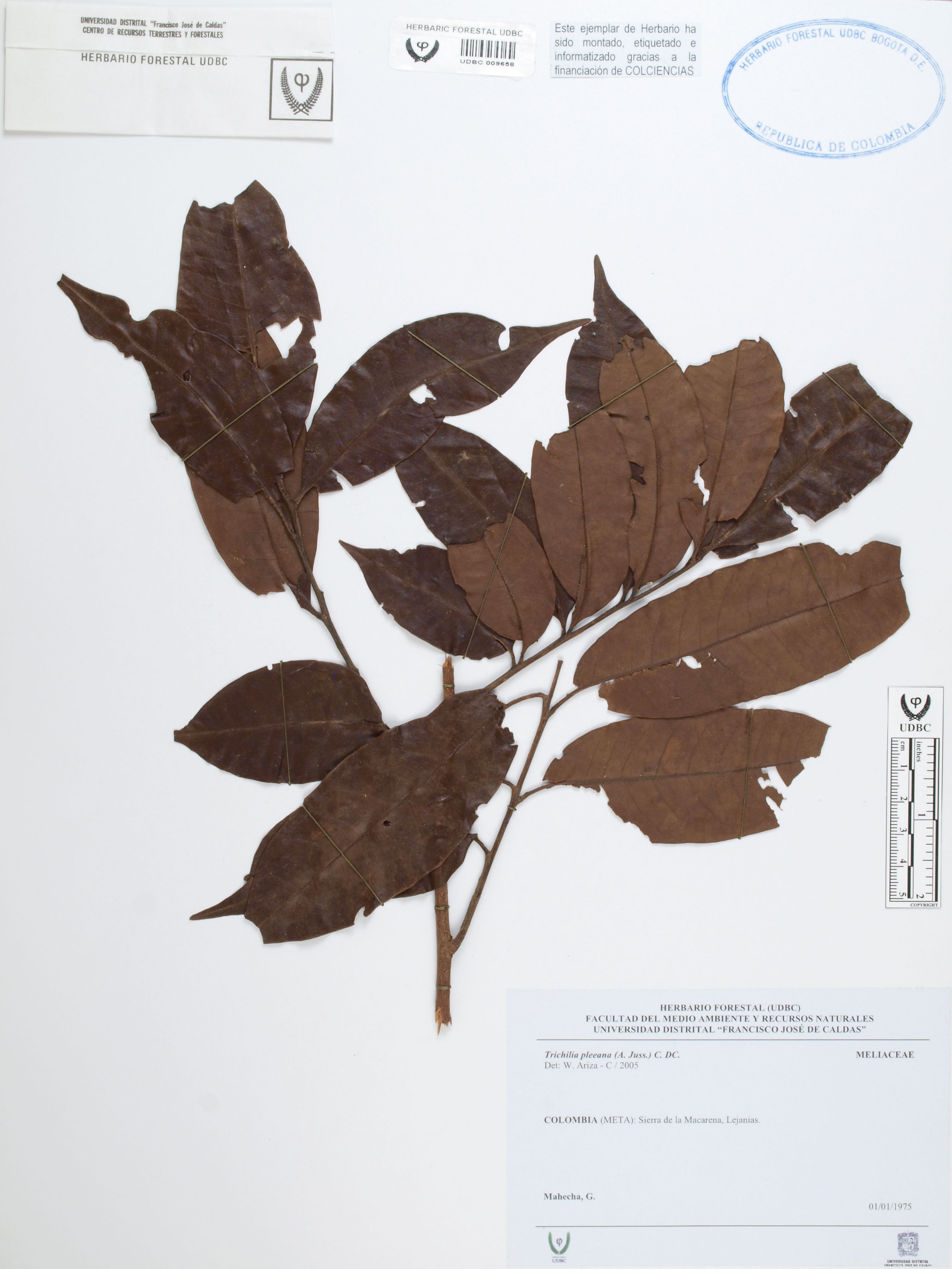 Fotografía del ejemplar Mahecha, G. 1771, determinado como Trichilia pleeana en el año 2005