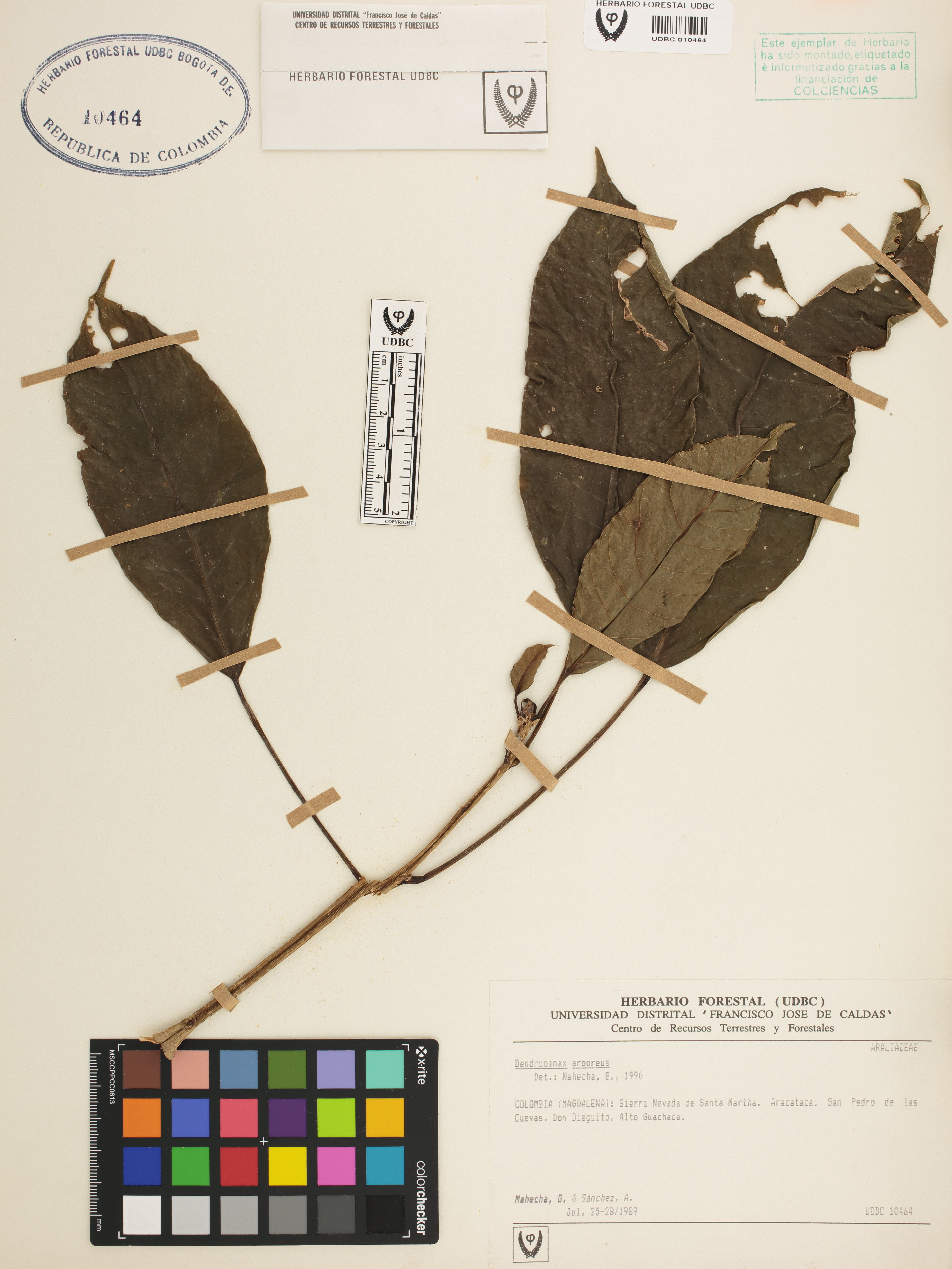 Fotografía del ejemplar Mahecha, G., determinado como Dendropanax arboreus en el año 1990
