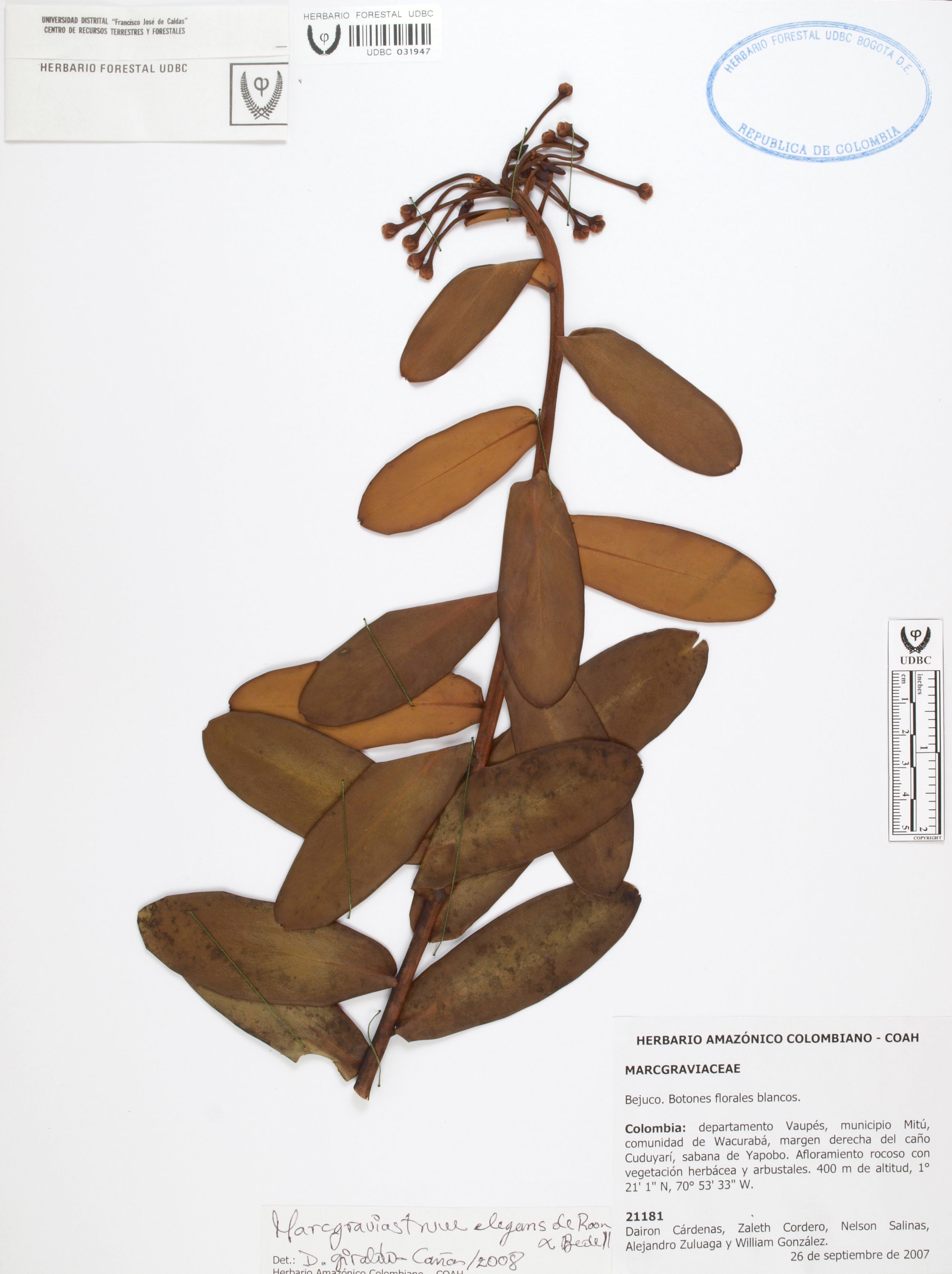Fotografía del ejemplar Cárdenas, D. 21181, determinado como Marcgraviastrum elegans en el año 2008