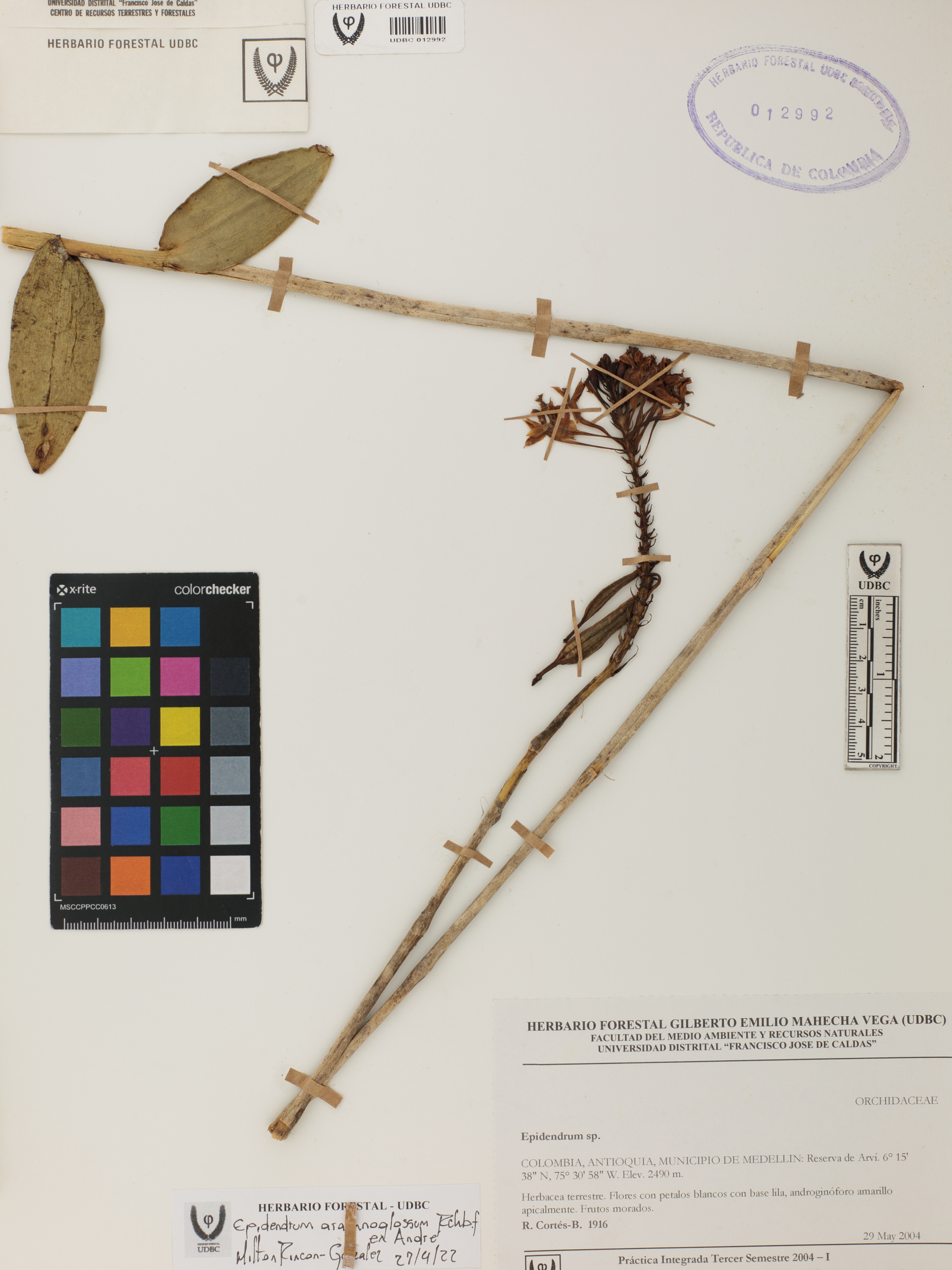 Fotografía del ejemplar Cortés-B., R. 1916, determinado como Epidendrum arachnoglossum en el año 2022
