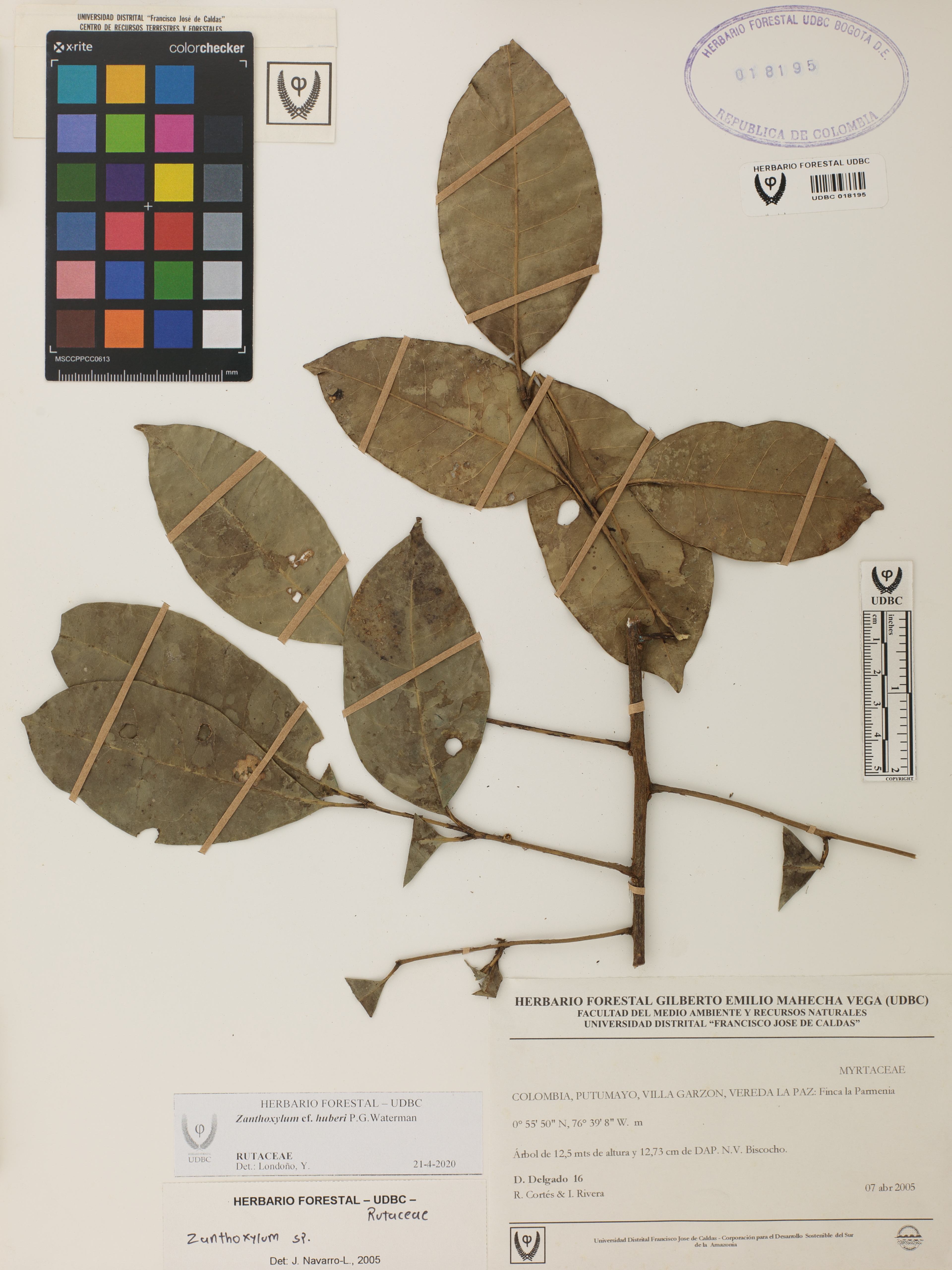 Fotografía del ejemplar Cortés-B., R. 16, determinado como Zanthoxylum huberi en el año 2020