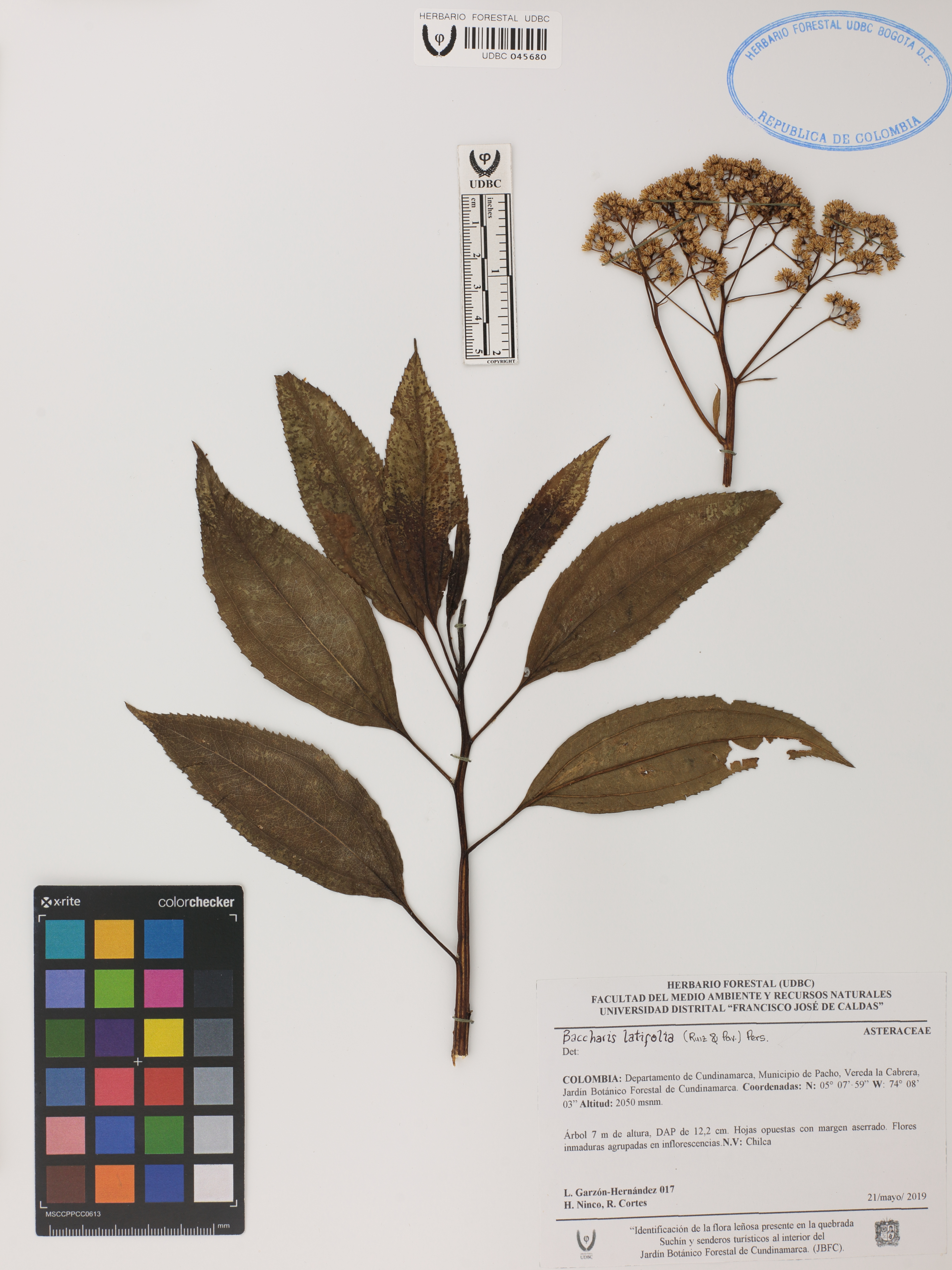| dc.description | Fotografía del ejemplar Garzón-Hernández, L. 17, determinado como Baccharis latifolia en el año 2019 | |