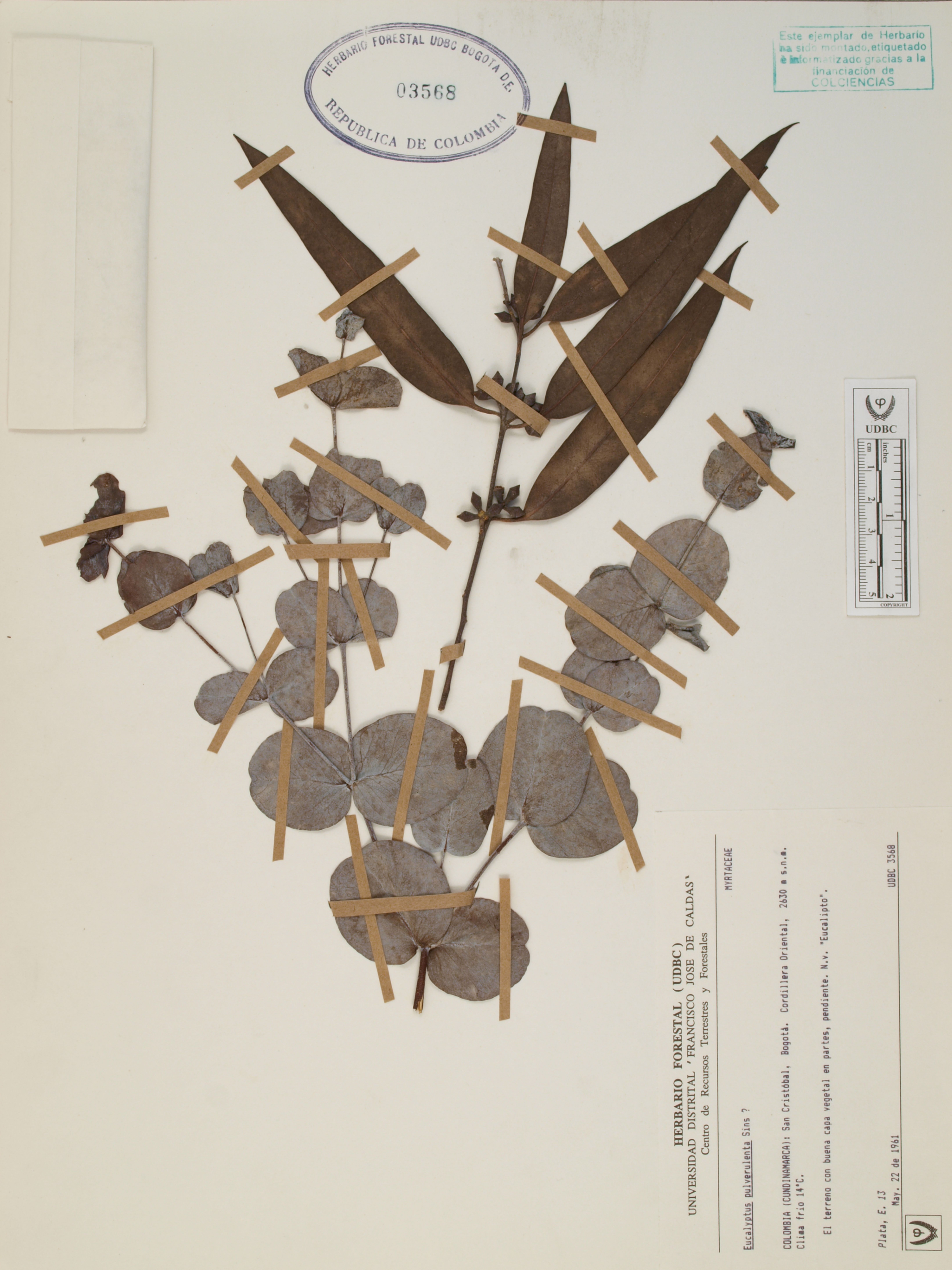 Fotografía del ejemplar Plata, E. 13, determinado como Eucalyptus pulverulenta