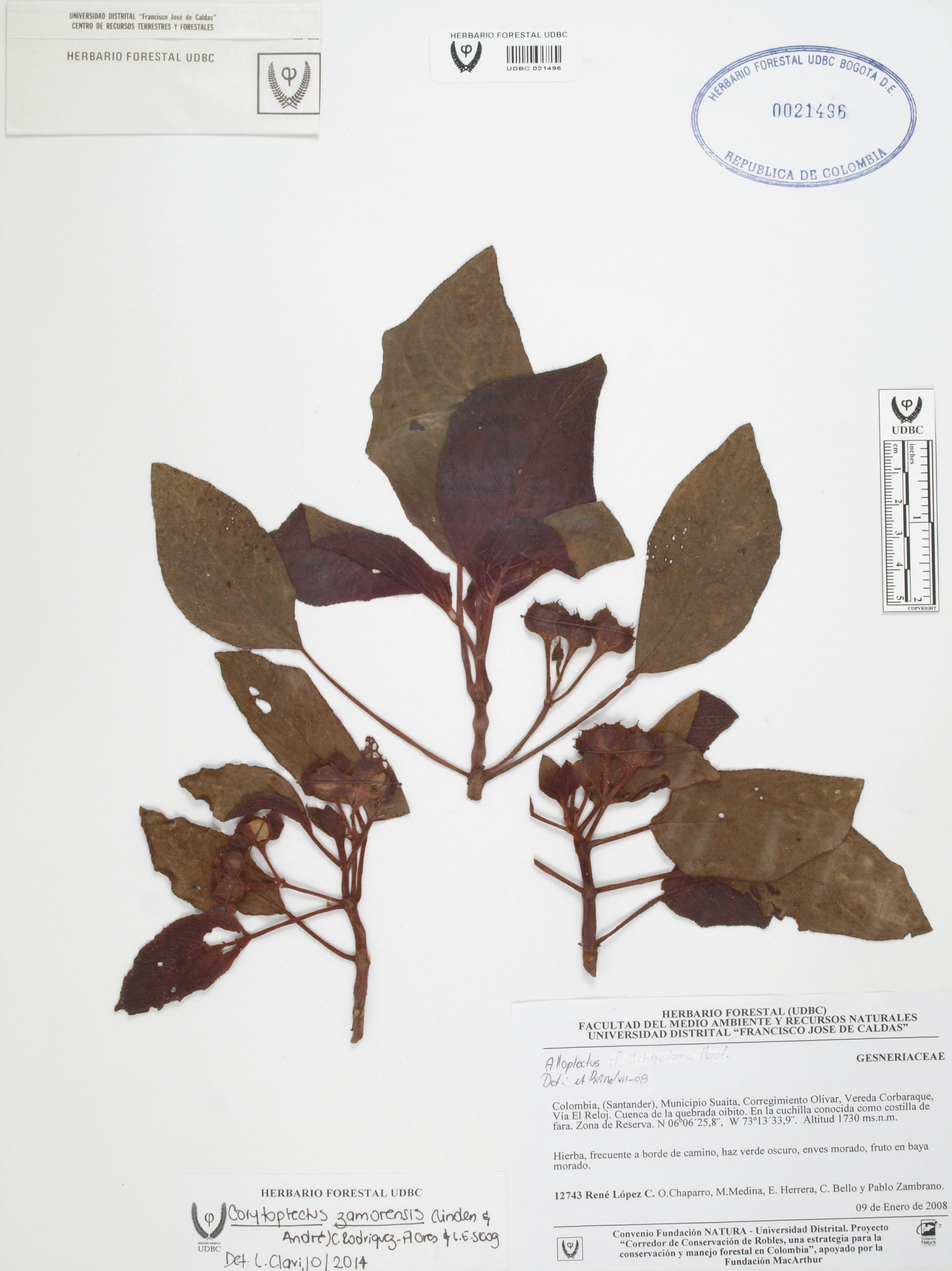 Fotografía del ejemplar López, R. 12743, determinado como Corytoplectus zamorensis en el año 2014