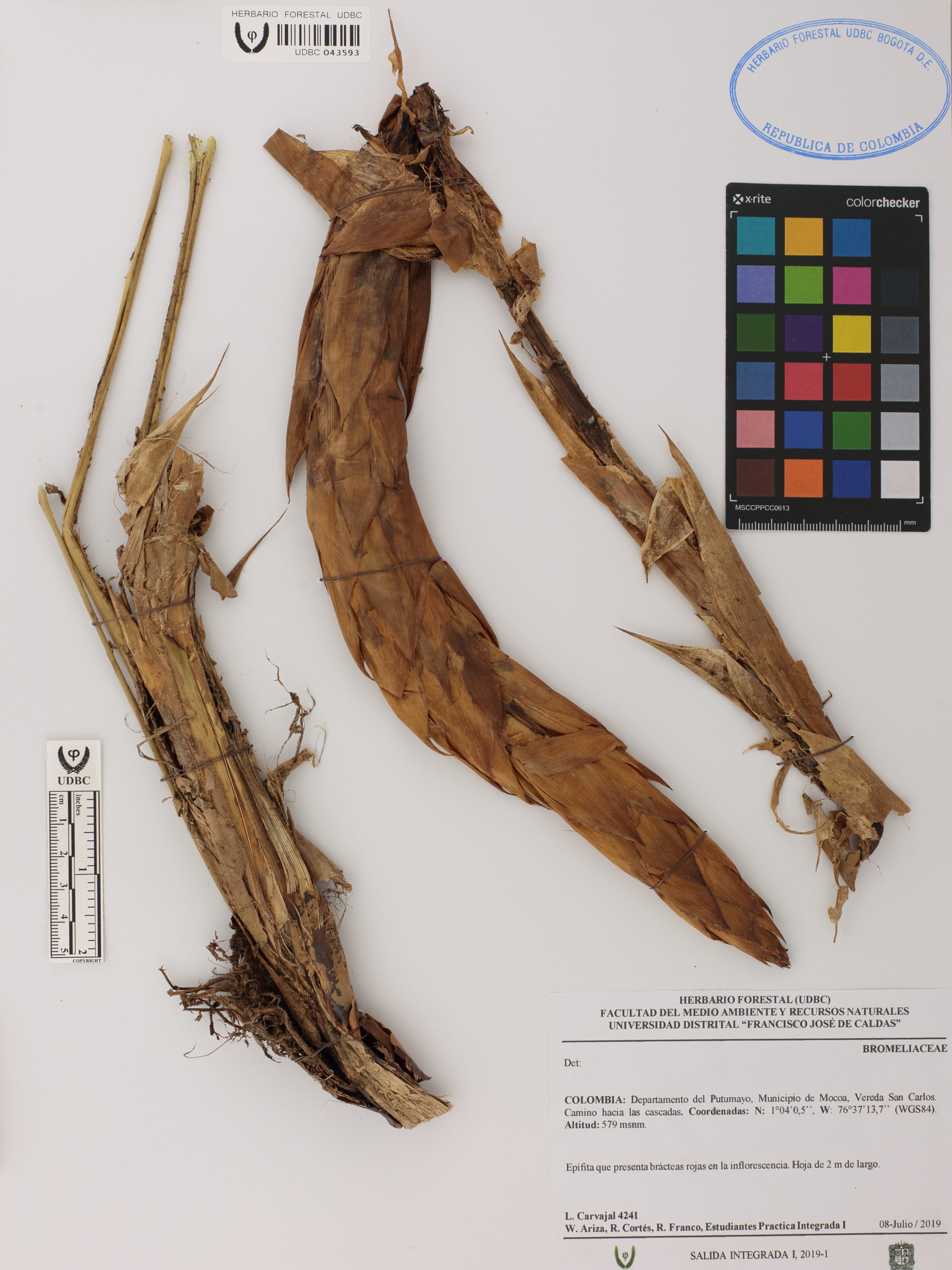 Fotografía del ejemplar Carvajal, L. 4241, determinado como Bromeliaceae