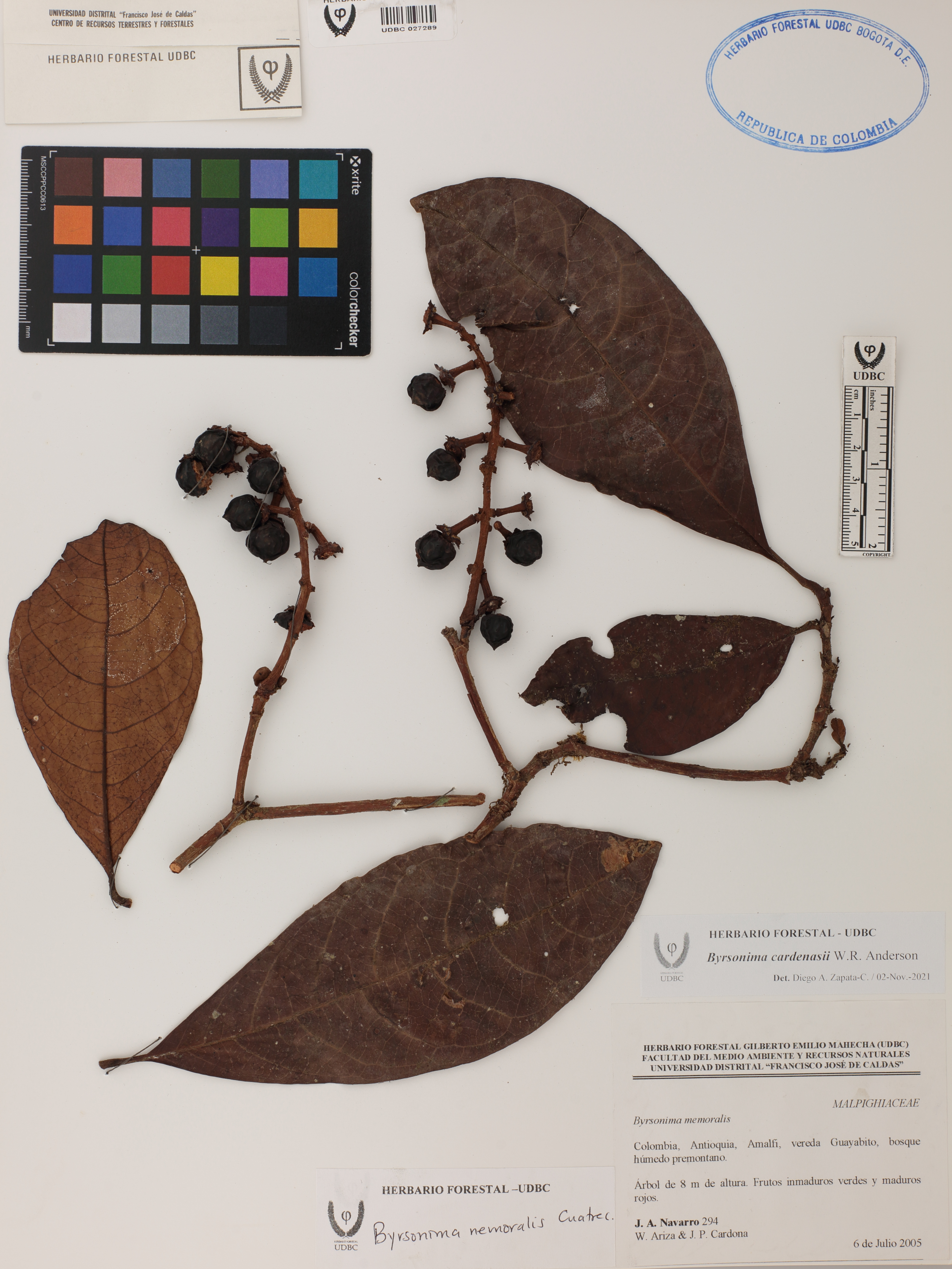 Fotografía del ejemplar Navarro, J. 294, determinado como Byrsonima cardenasii en el año 2021