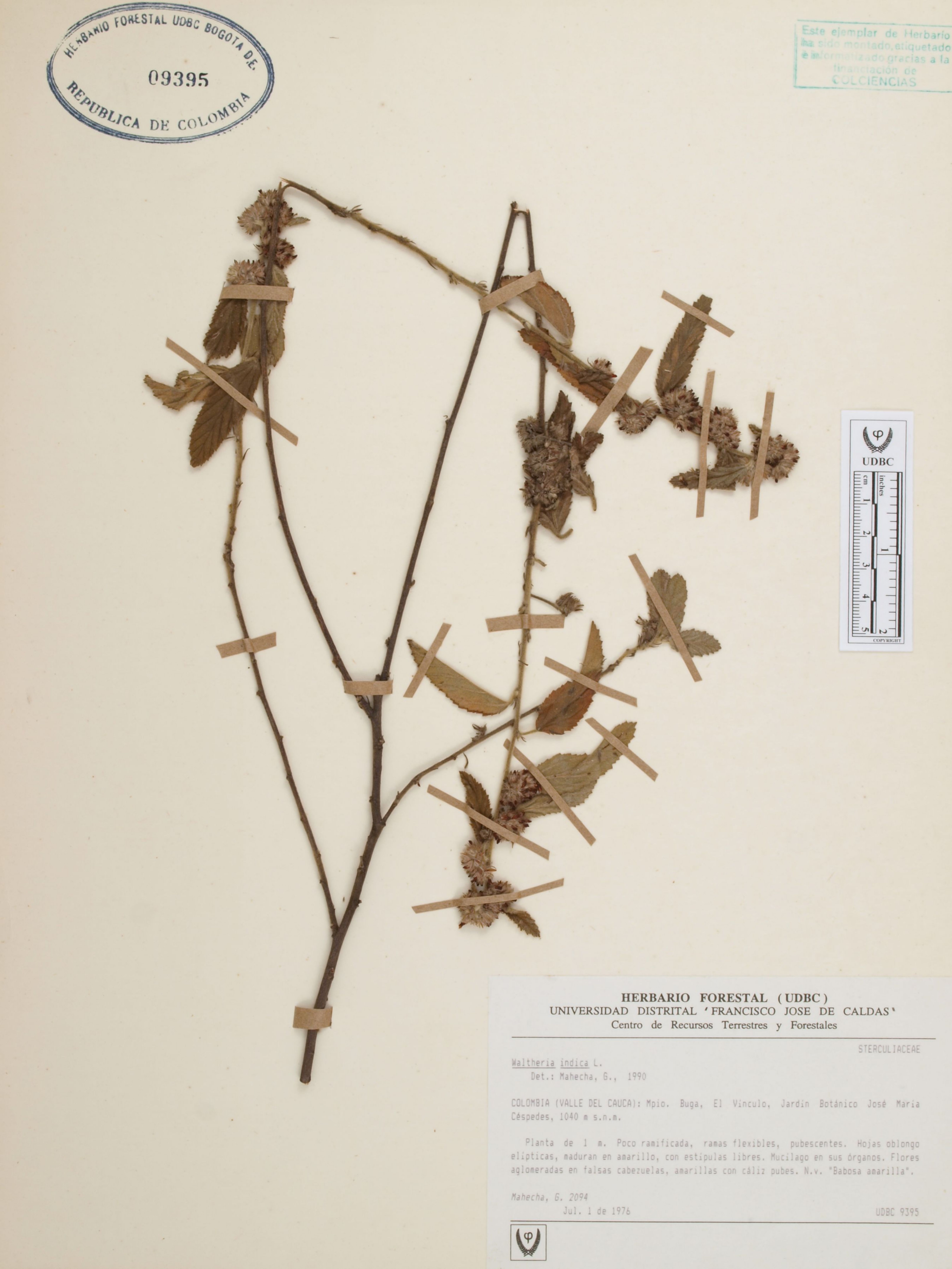 | dc.description | Fotografía del ejemplar Mahecha, G. 2094, determinado como Waltheria indica en el año 1990 | |