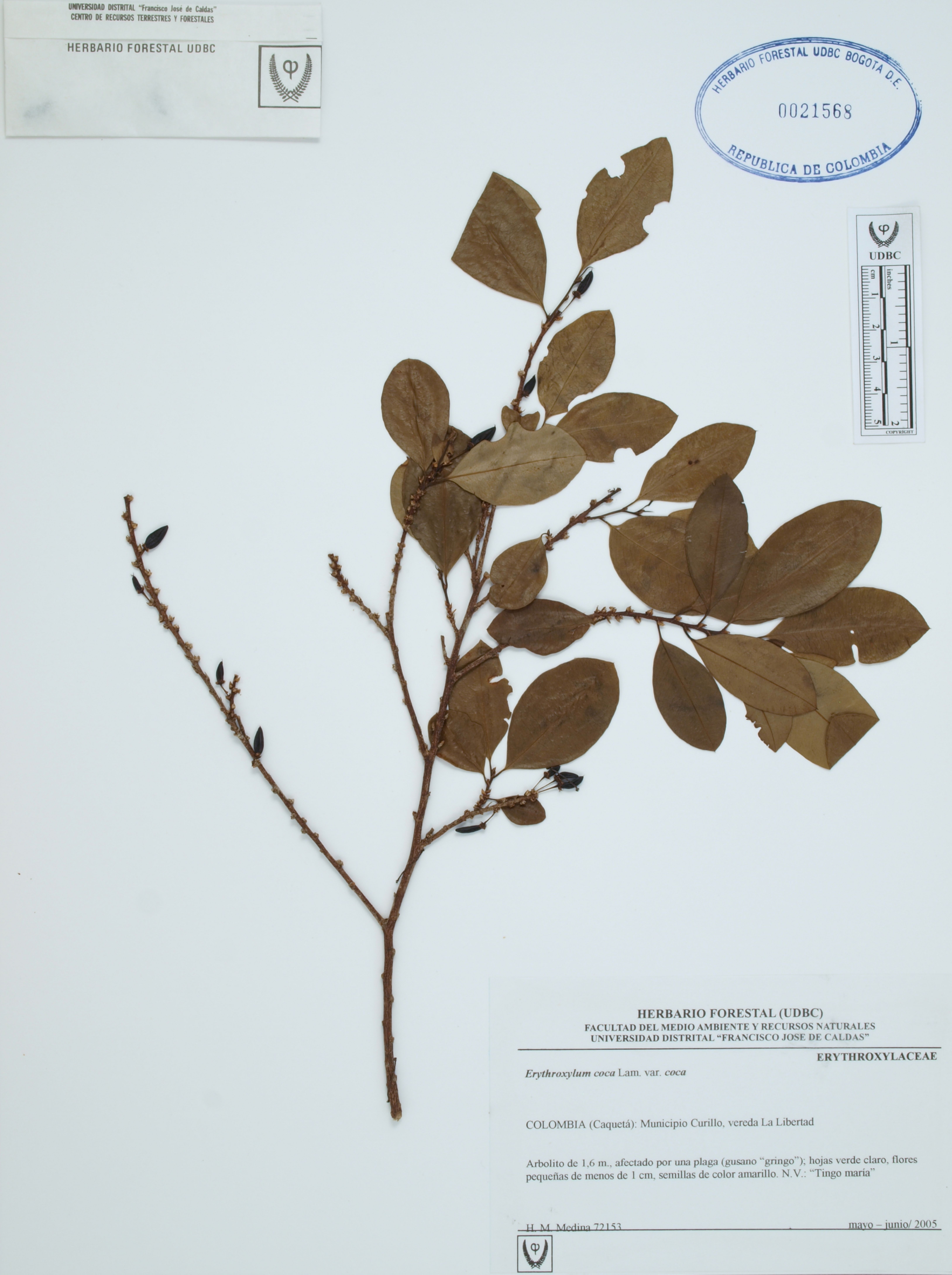 | dc.description | Fotografía del ejemplar Medina, H. 72153, determinado como Erythroxylum coca var. coca | |